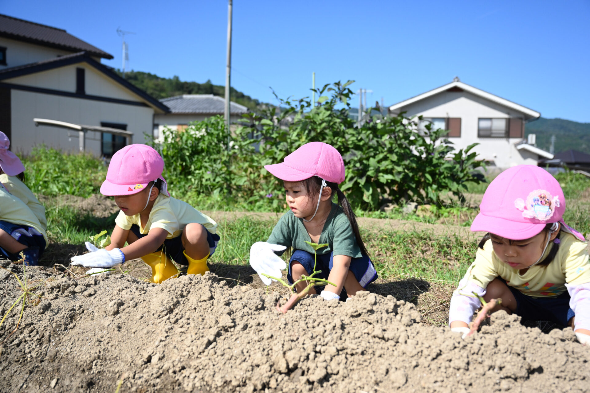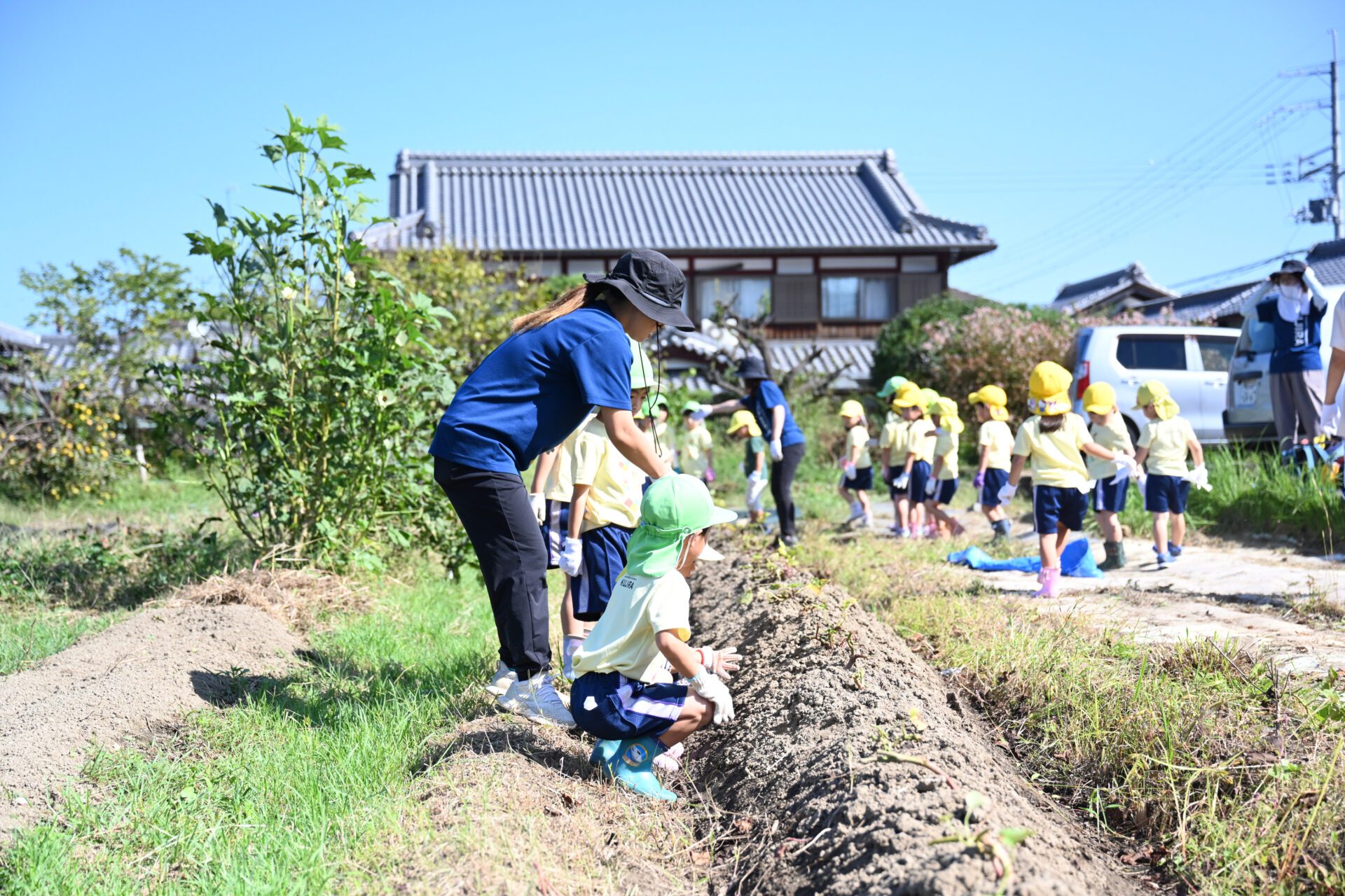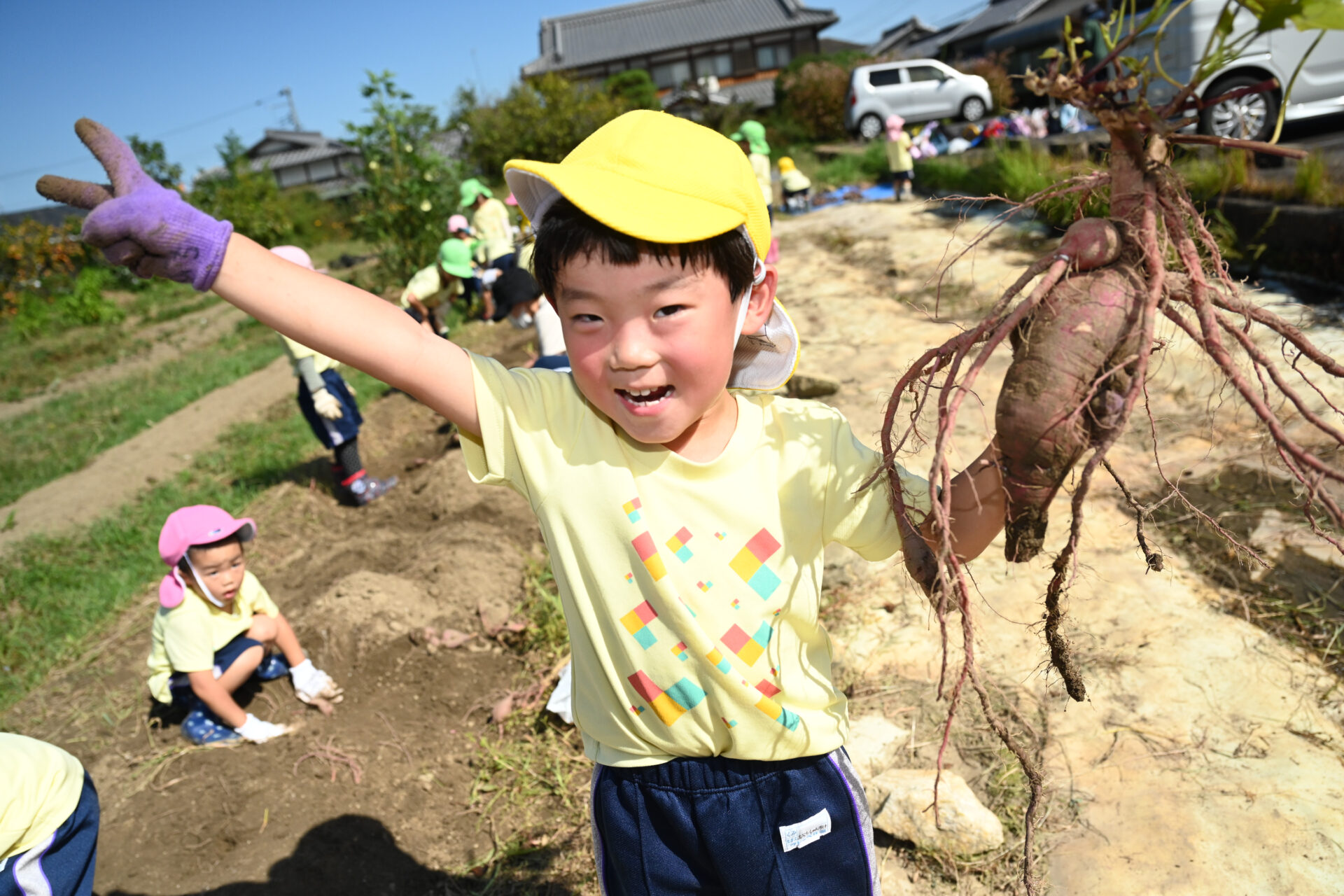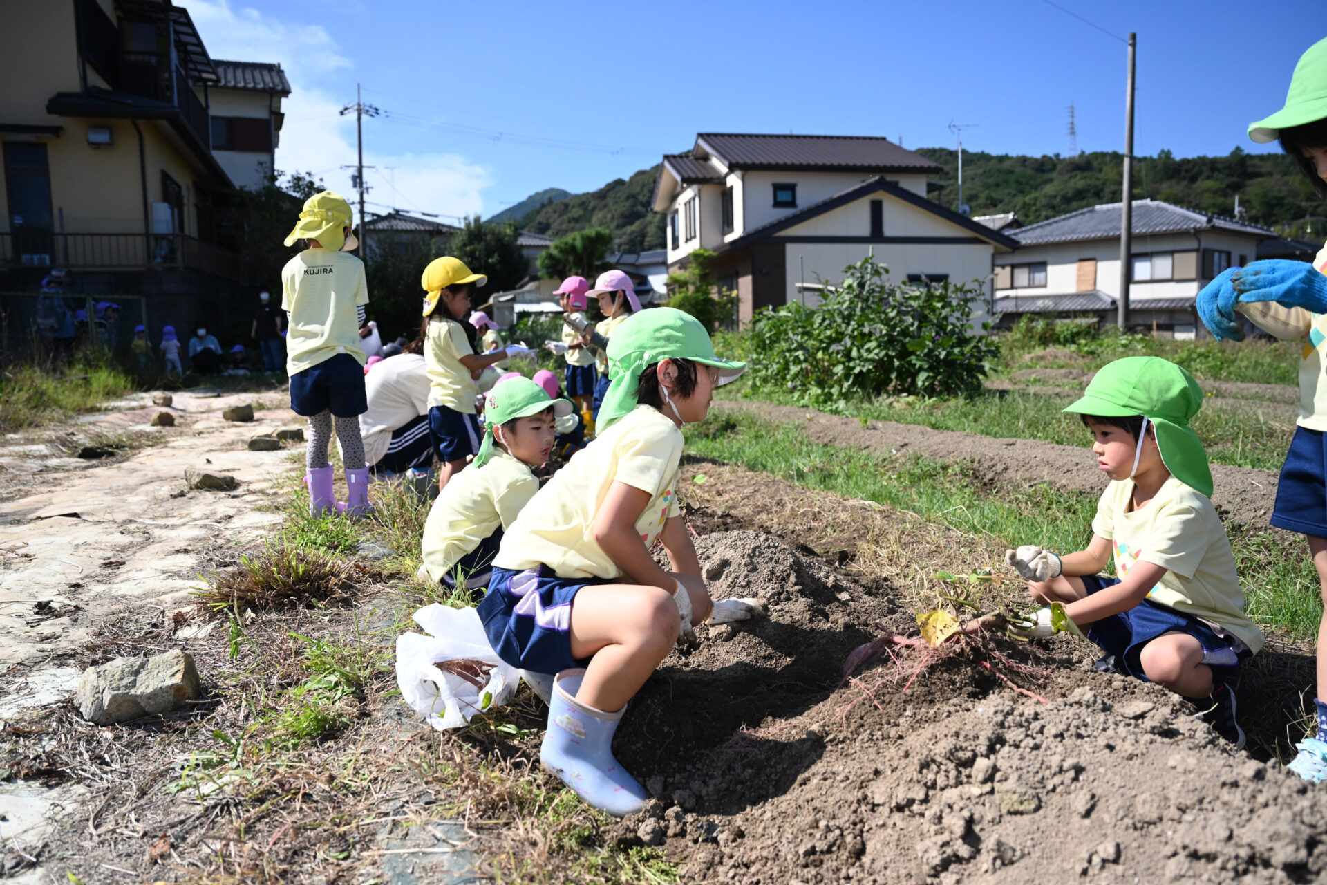 「大きいお芋出てきた!」「いっぱい繋がってる!?」とお話しながら、掘り進める子どもたち。