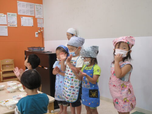 また、「○○ちゃんのお汁(茶碗)ないよ!」と、お当番さん以外のお友だちが、周りを見て教えてくれることもあります。