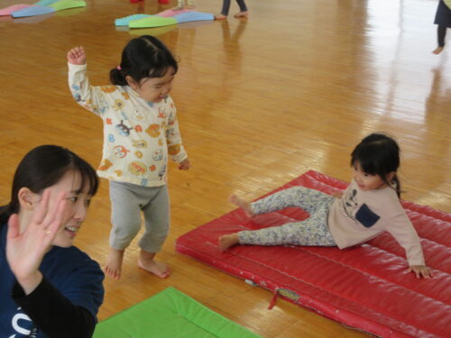 11月5日、今年度2度目の唐橋小規模保育園、石山くじら小規模保育園、石山くじら保育園の3園合同体操教室に参加しました。