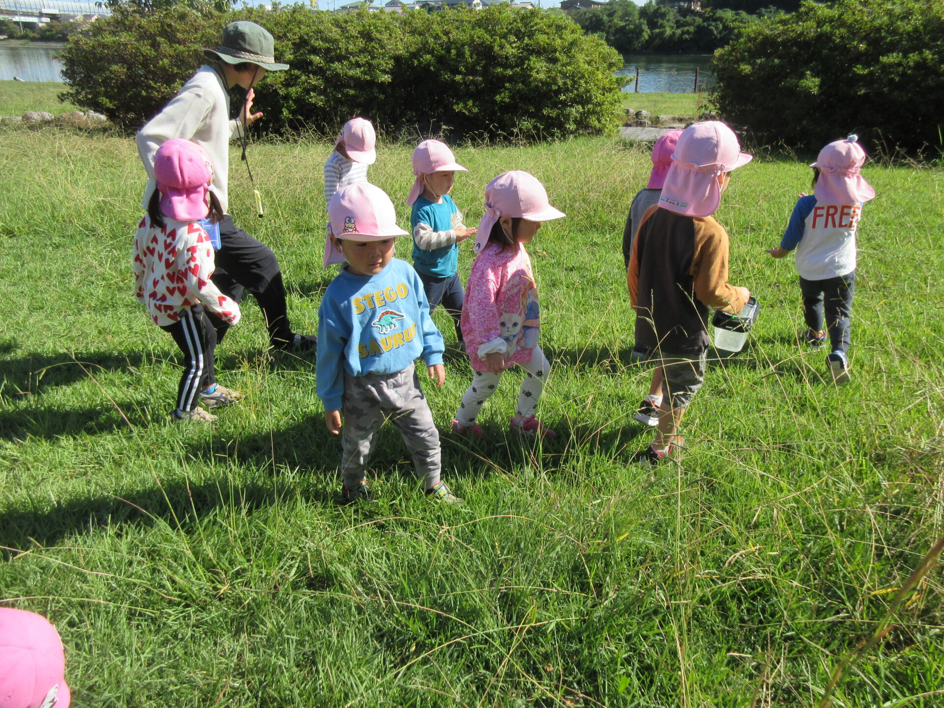 バッタ見つけもとても上手になっていて、前回ドキドキしていたお友だちも、「初めて捕まえたー!!」「4匹も!」と大喜びでした✨