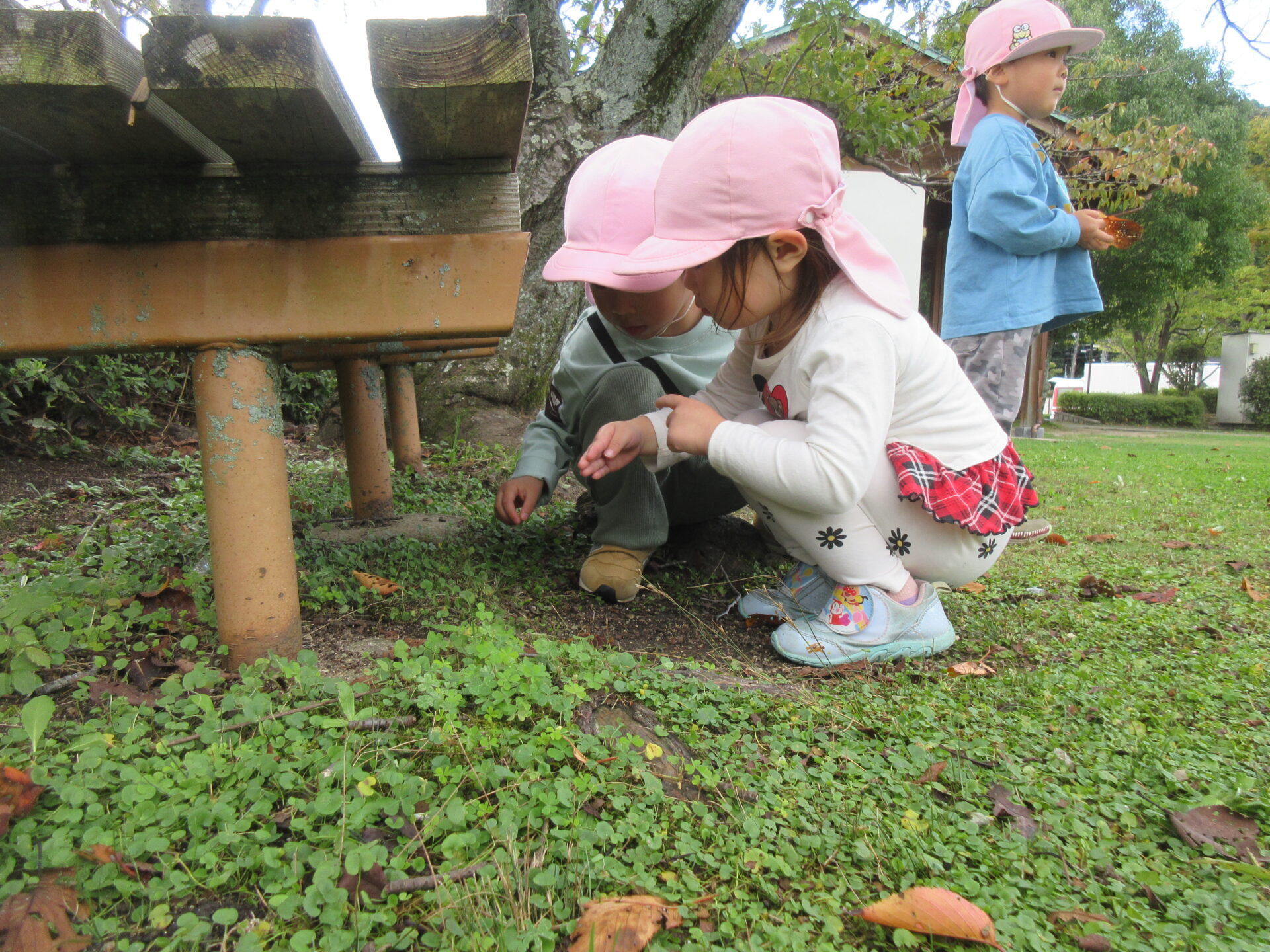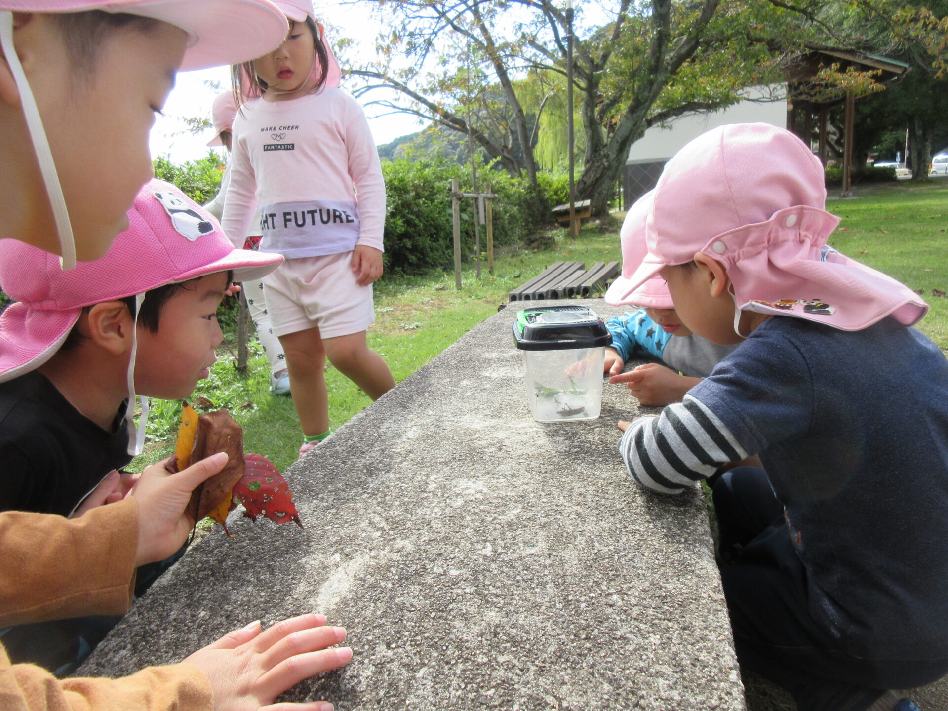 朝・夕はぐっと冷え込み、秋が深まってきました。しかし、お昼はまだまだ暖かい日もあり、螢谷公園に虫探しに出かけたにじチームさん♪