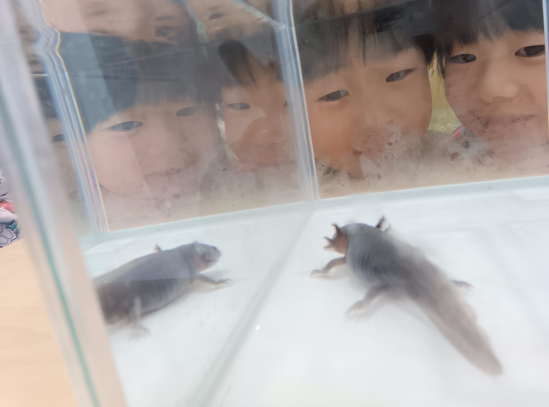 前日に、担任から『生き物道場』の話を聞き、とっても楽しみにしていた4・5歳児さん。