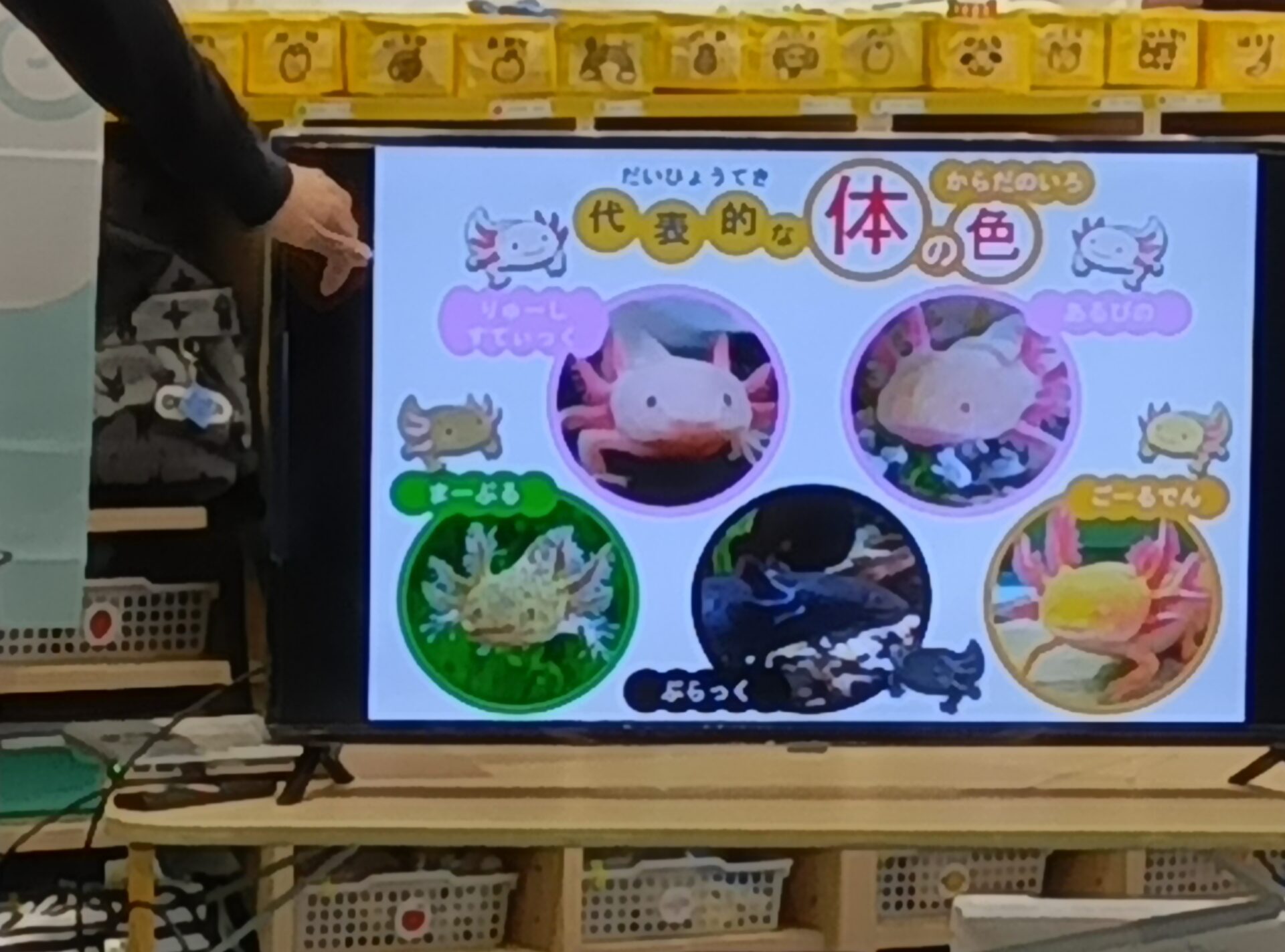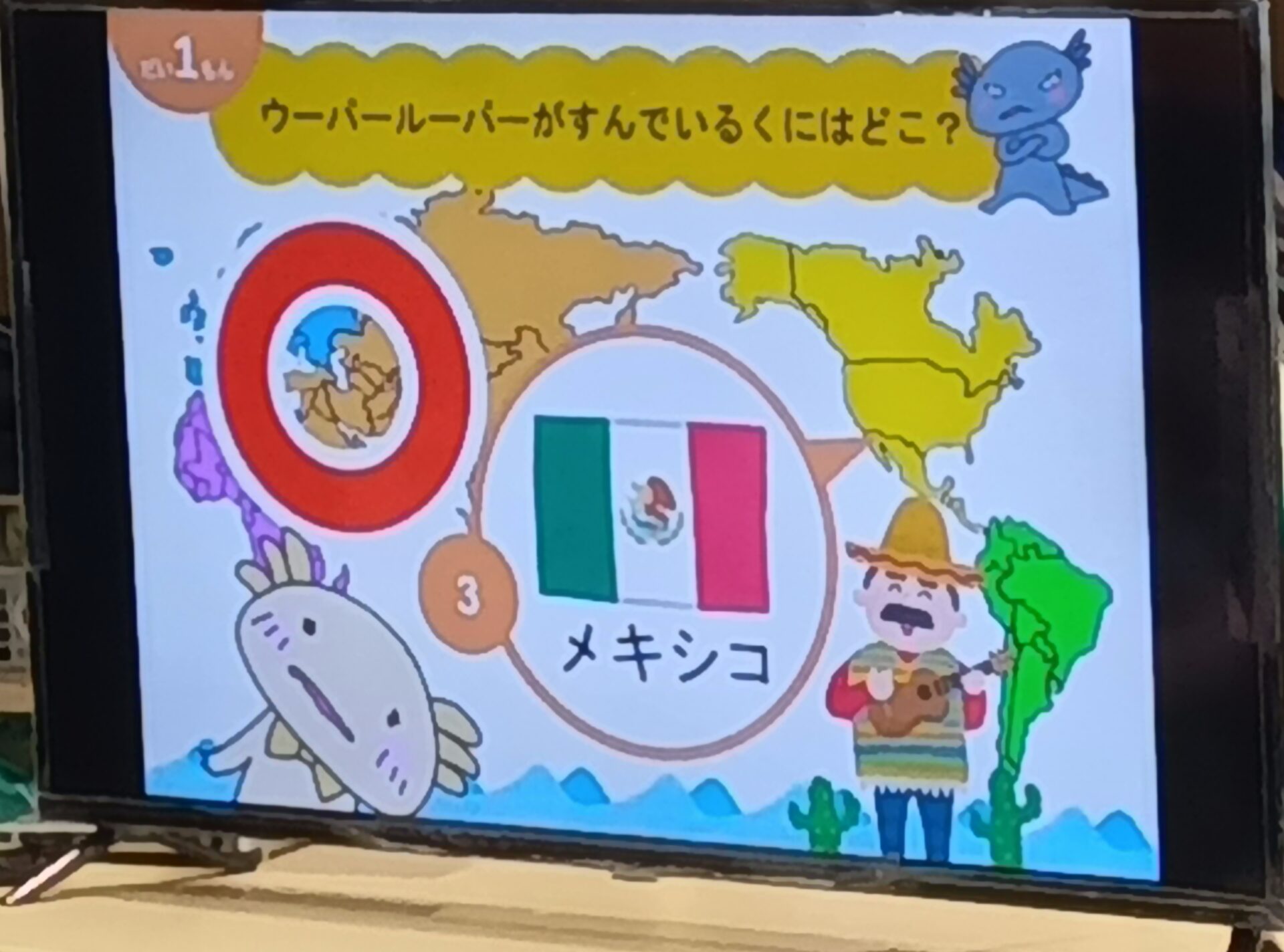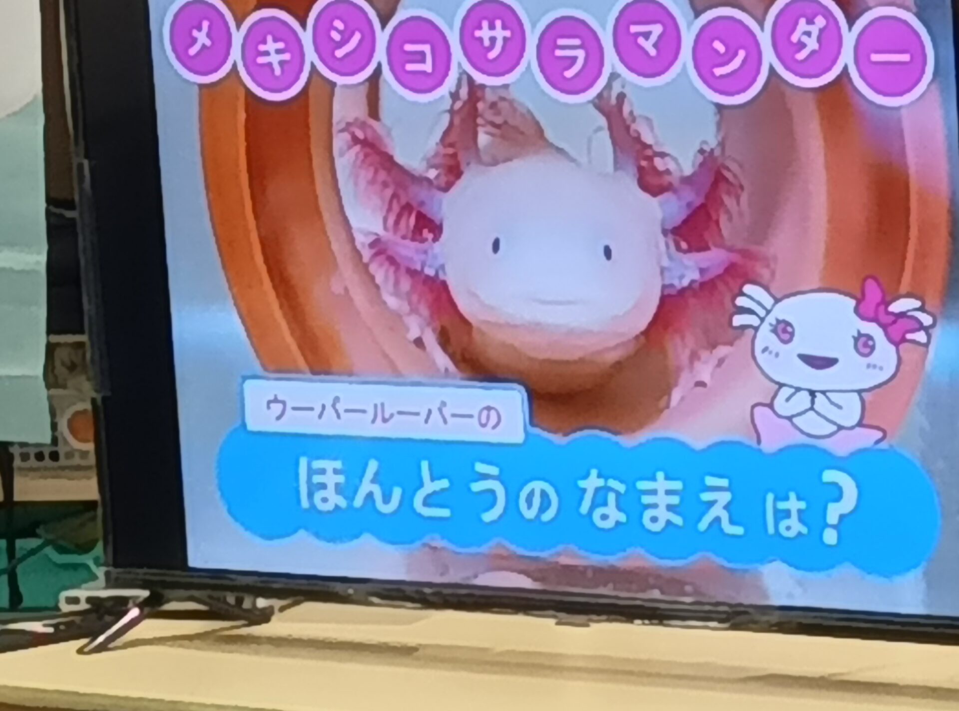 まず、ウーパールーパーの事を、3択クイズで教えてもらいました。