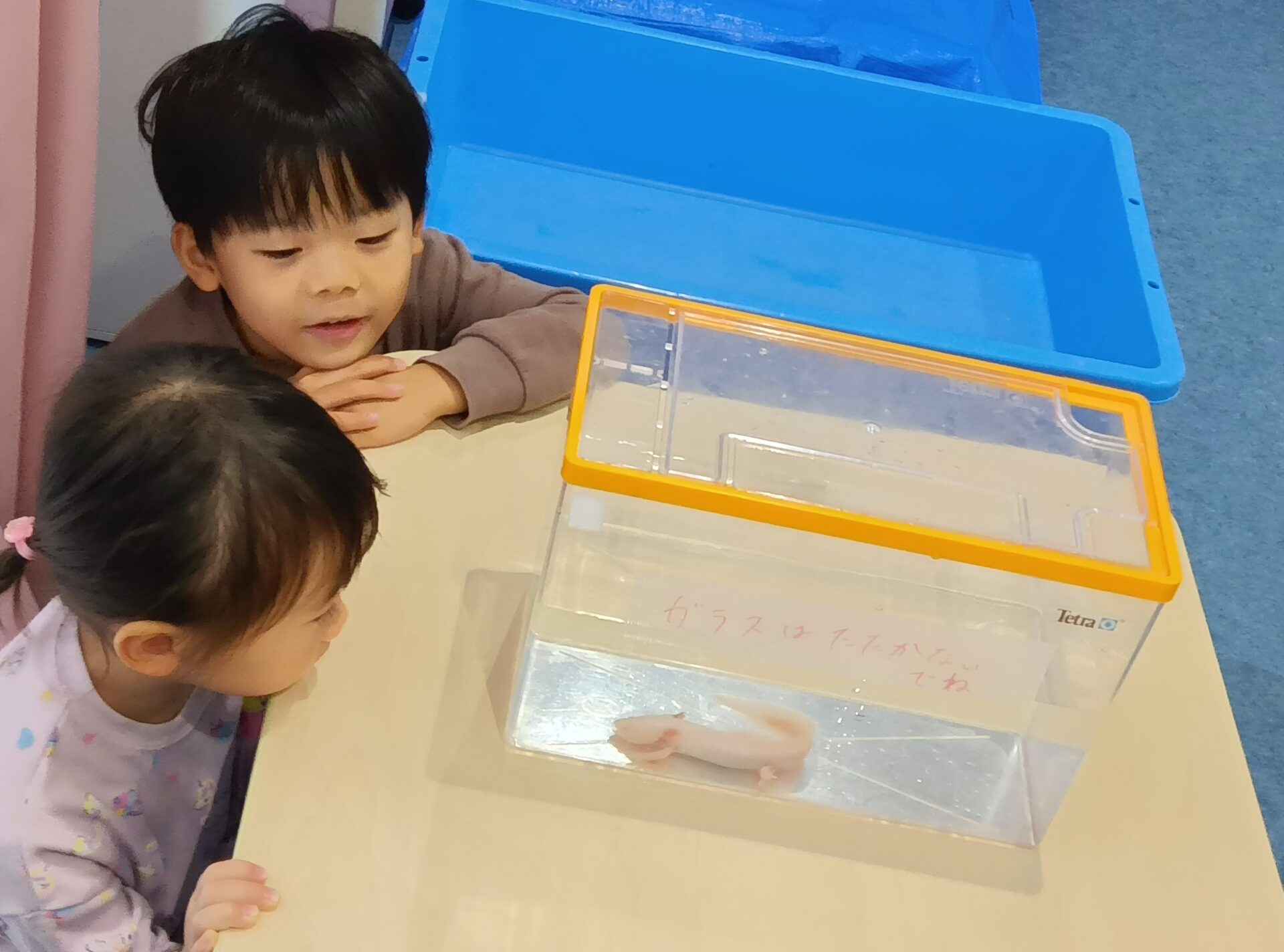 そして!かわいいマーブルウーパールーパーを1匹、保育園にプレゼントしていただきました。