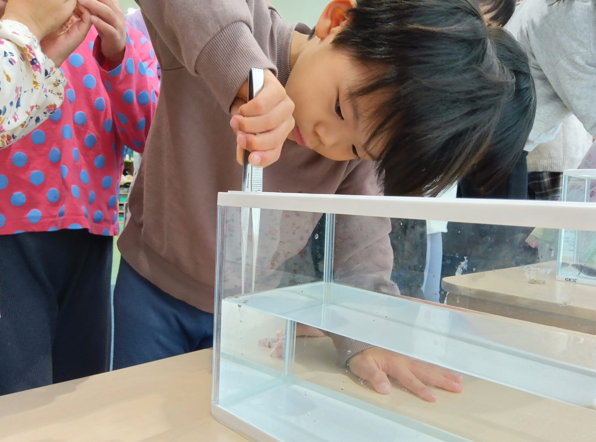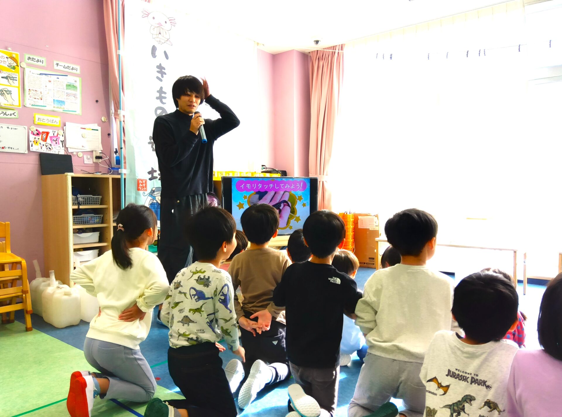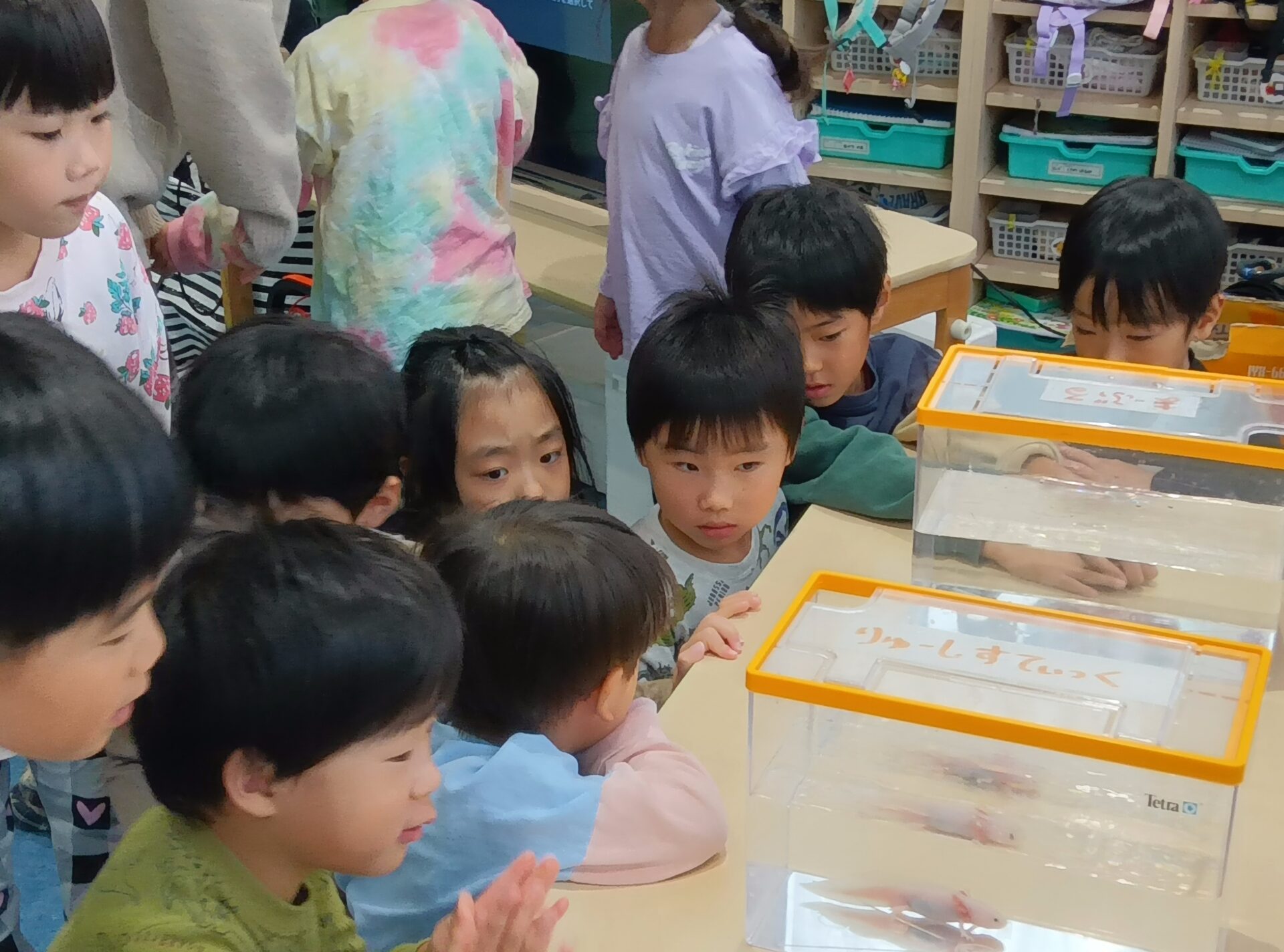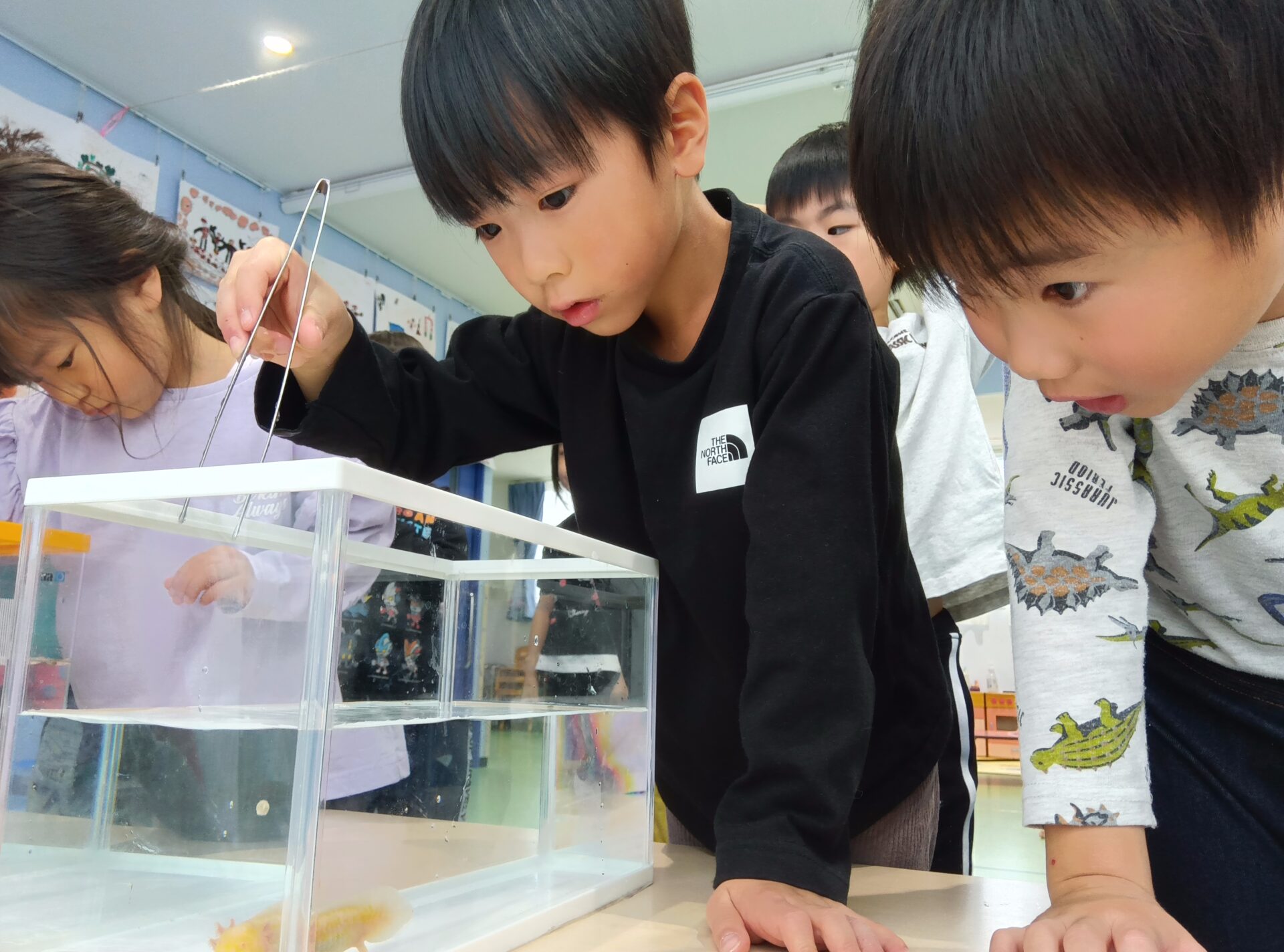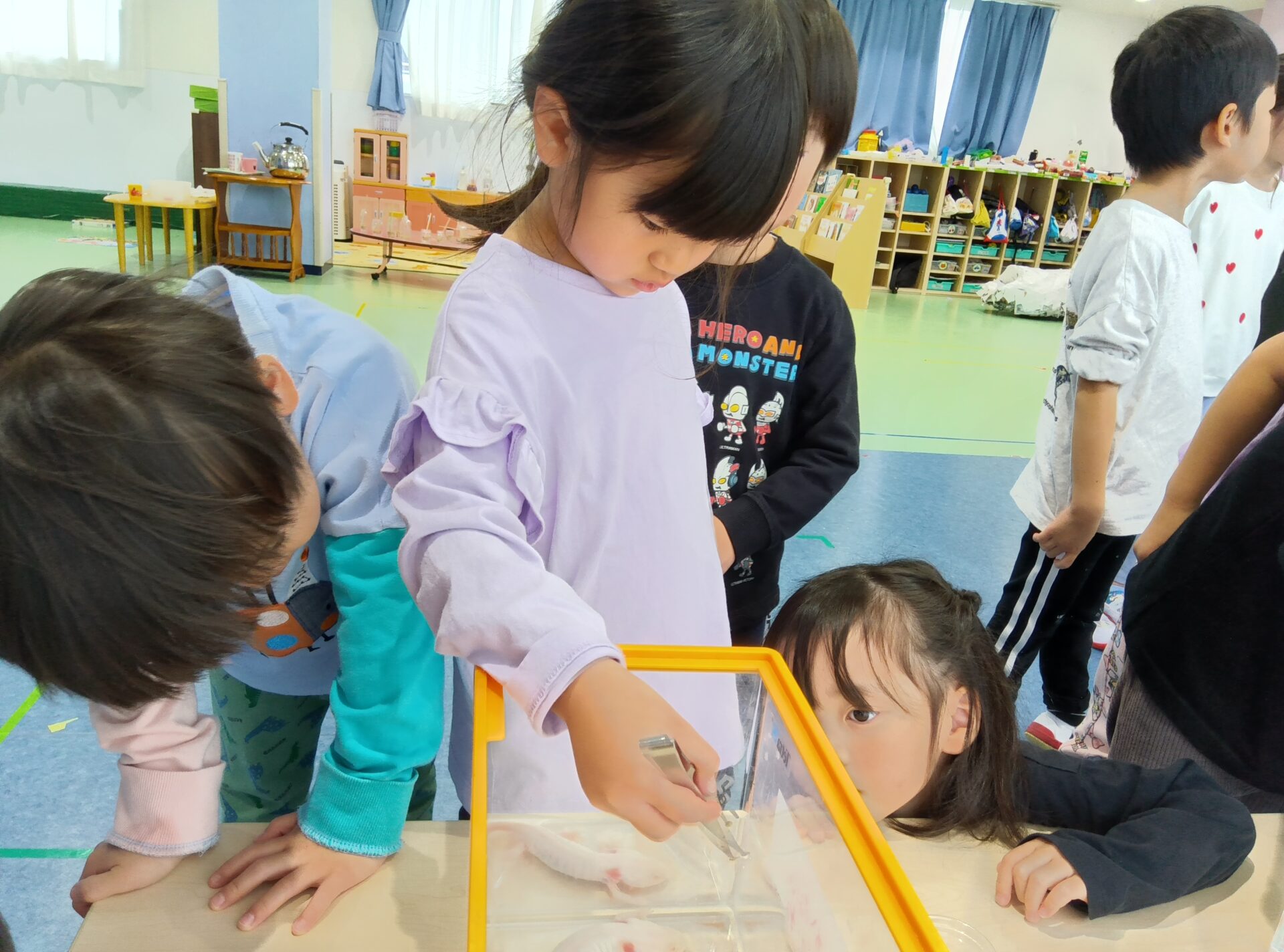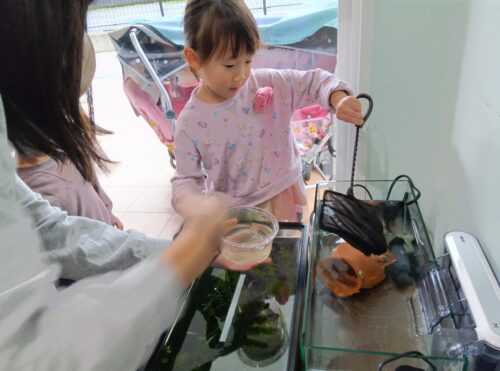 前日に、担任から『生き物道場』の話を聞き、とっても楽しみにしていた4・5歳児さん。