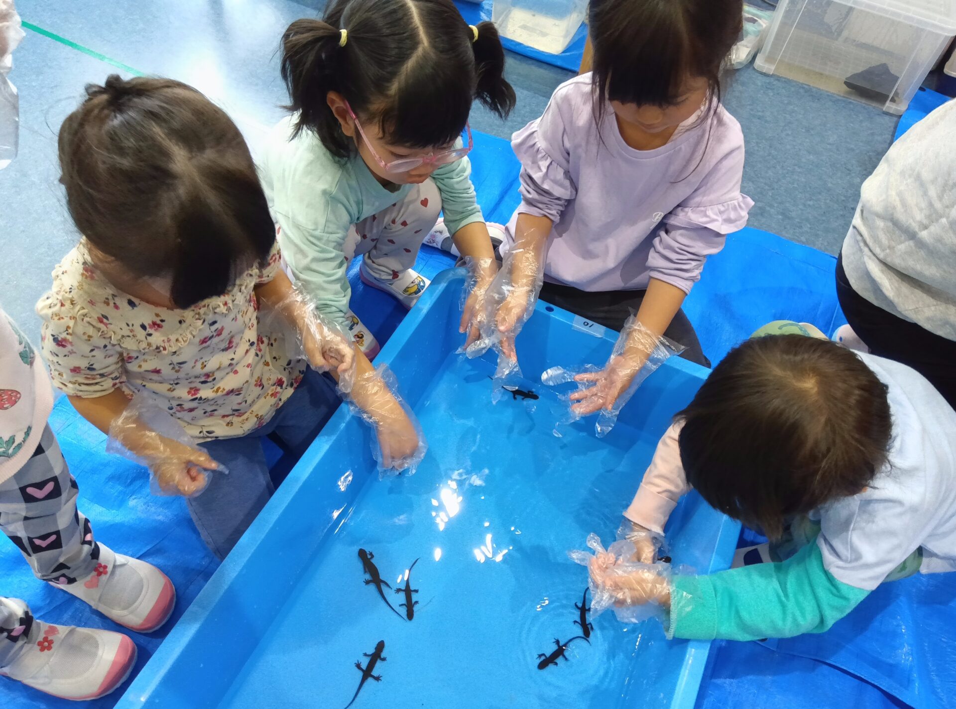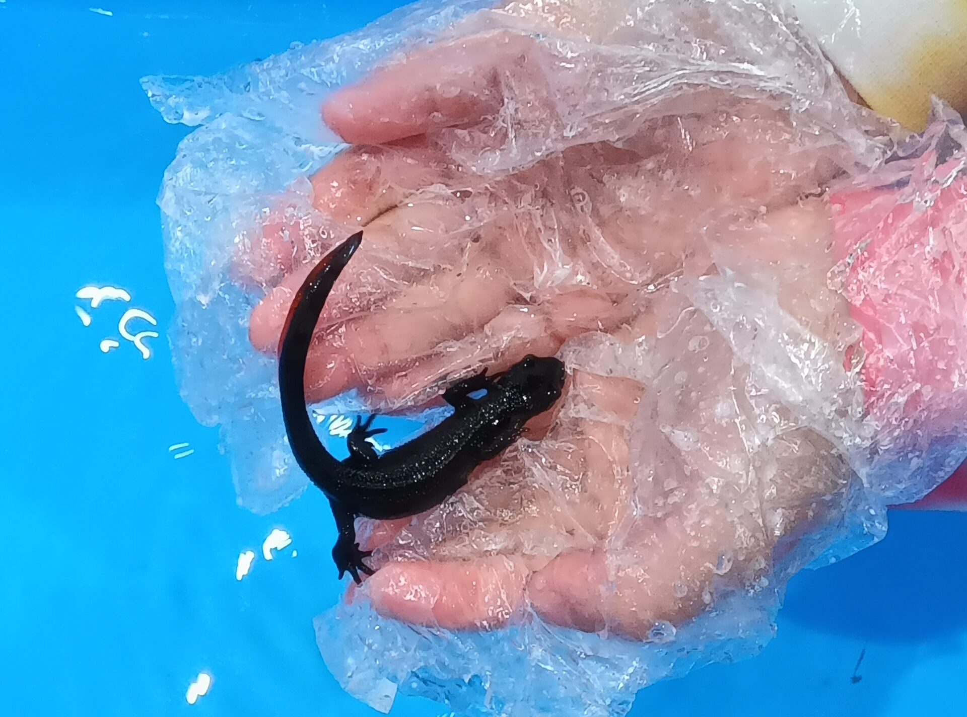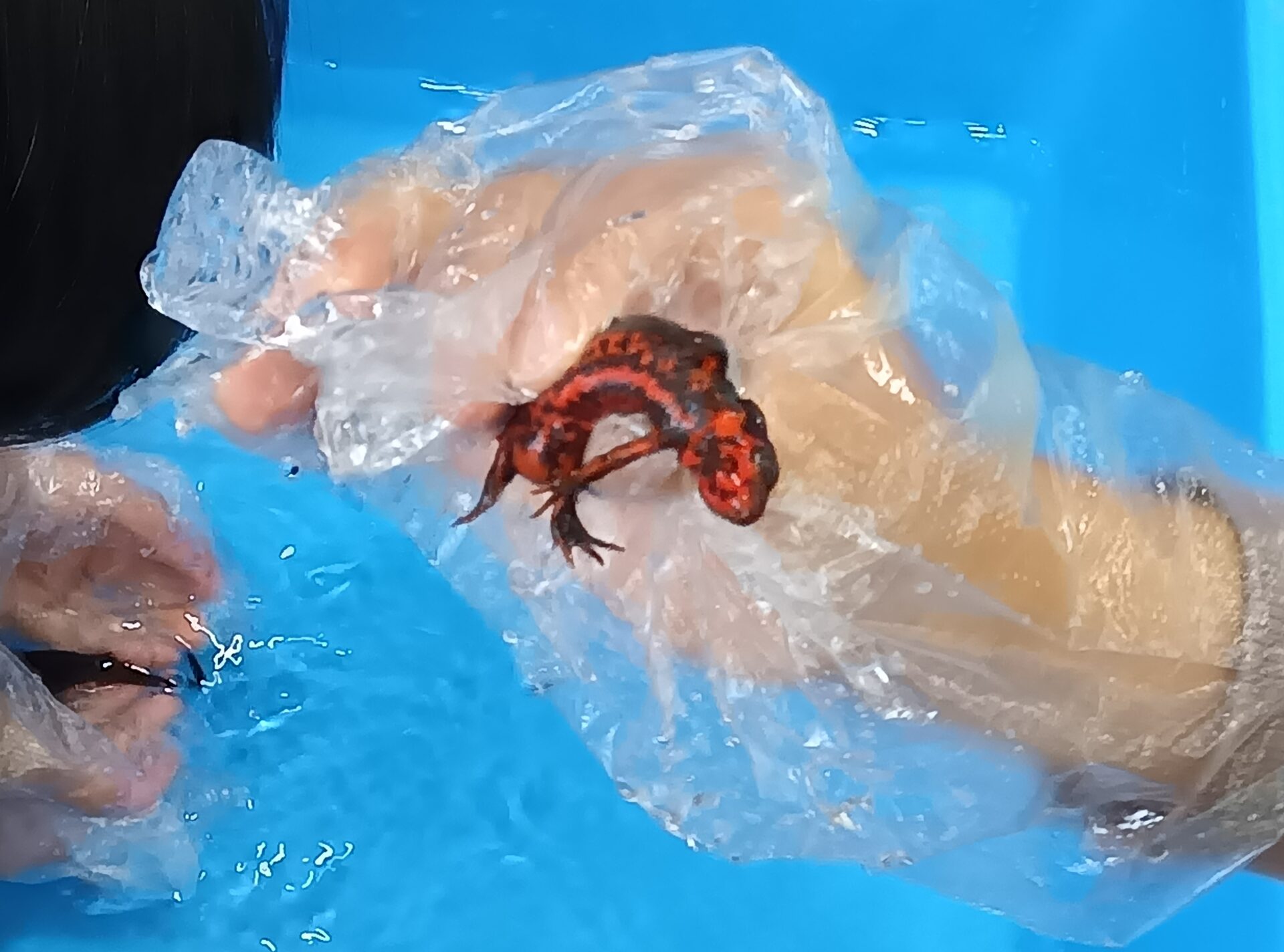 今日は、手袋をはめてアカハライモリに触らせてもらいました。