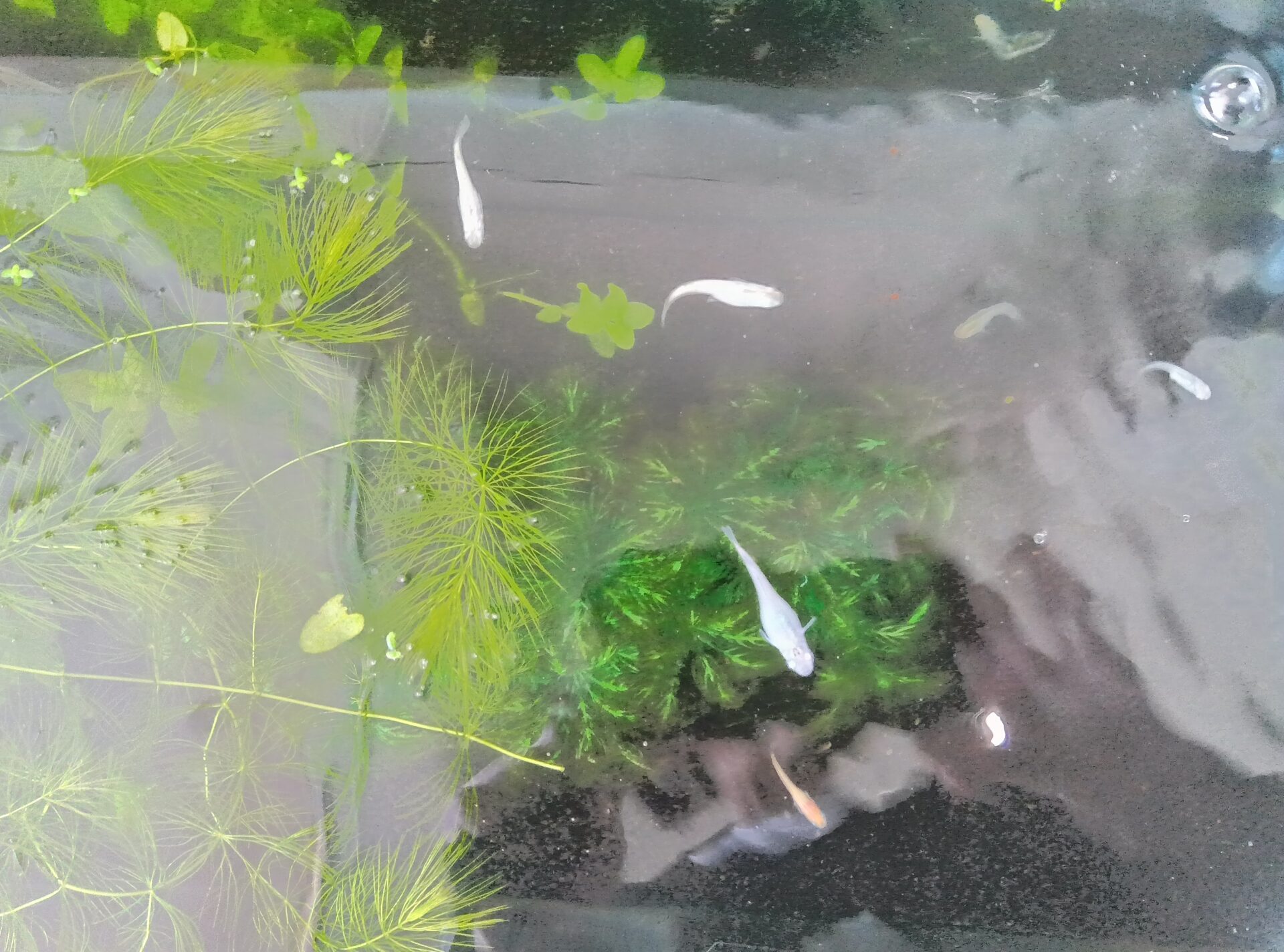 先住者のメダカちゃんと共に、石山くじらミニ水族館のお披露目です。