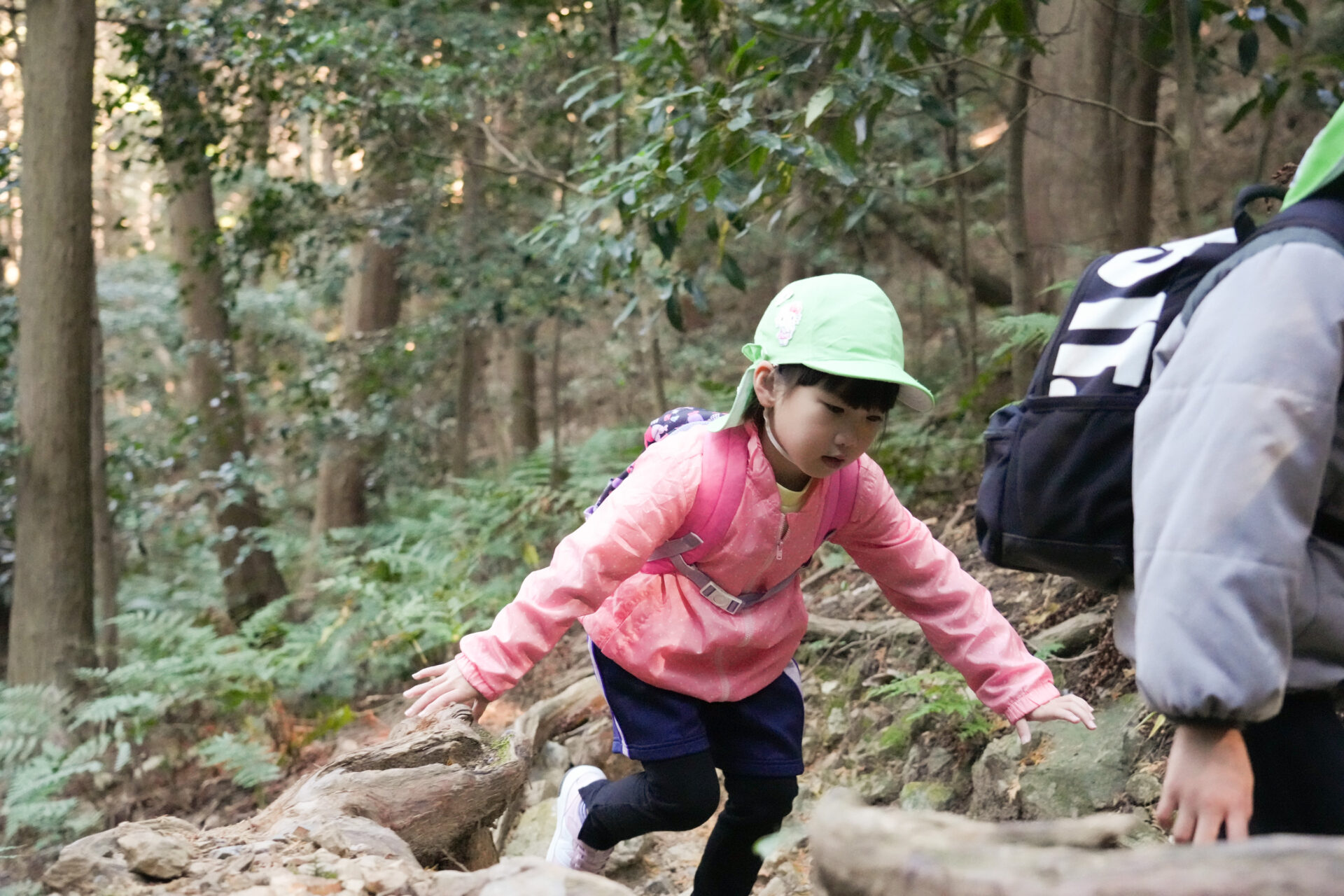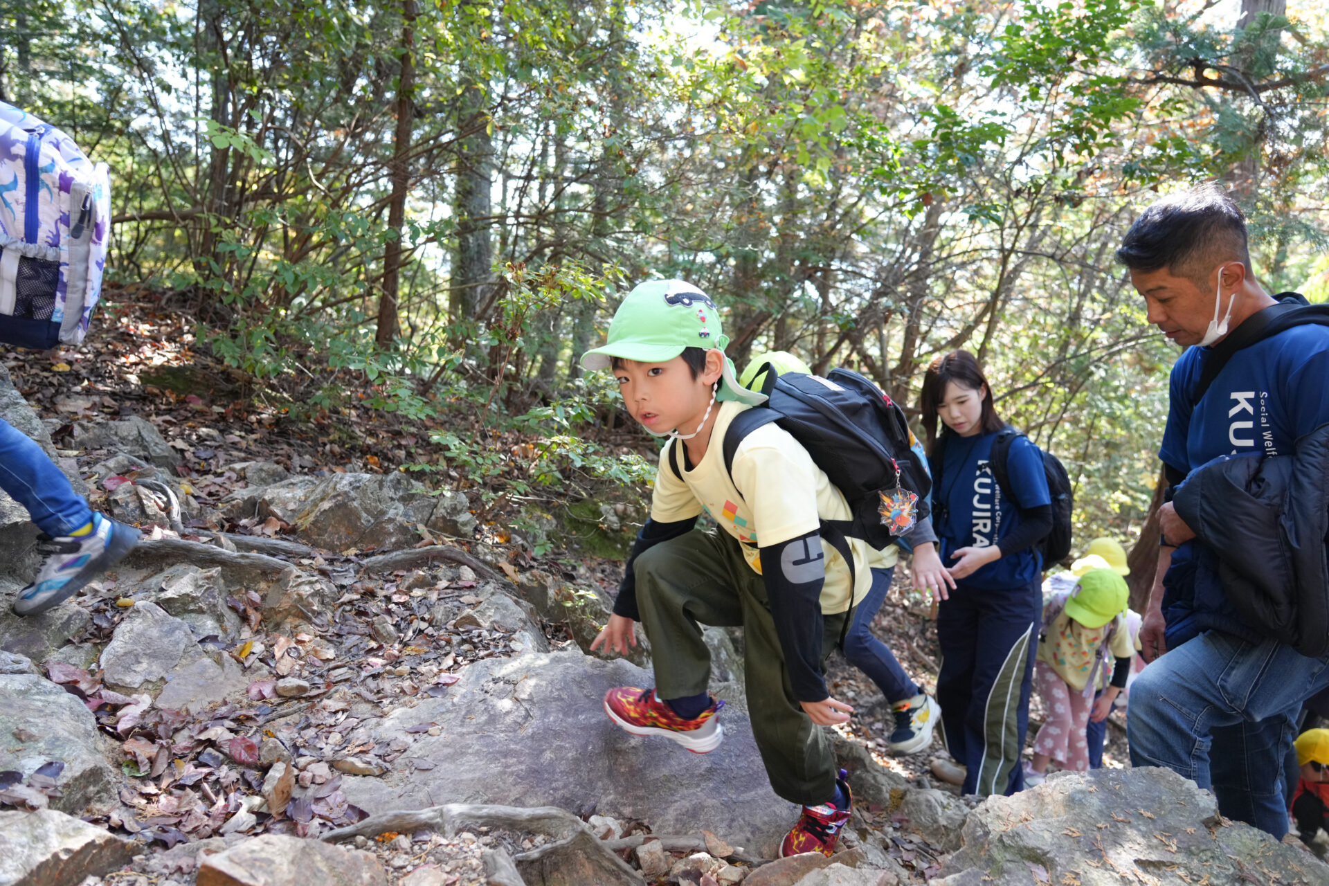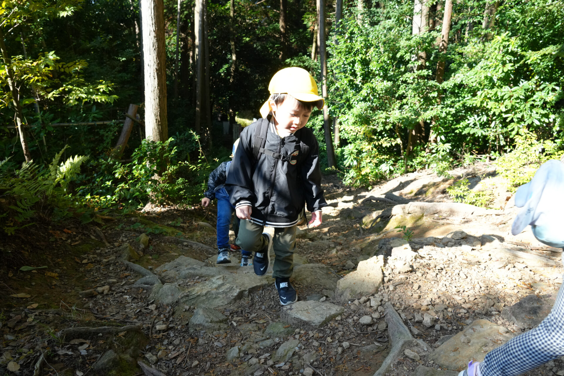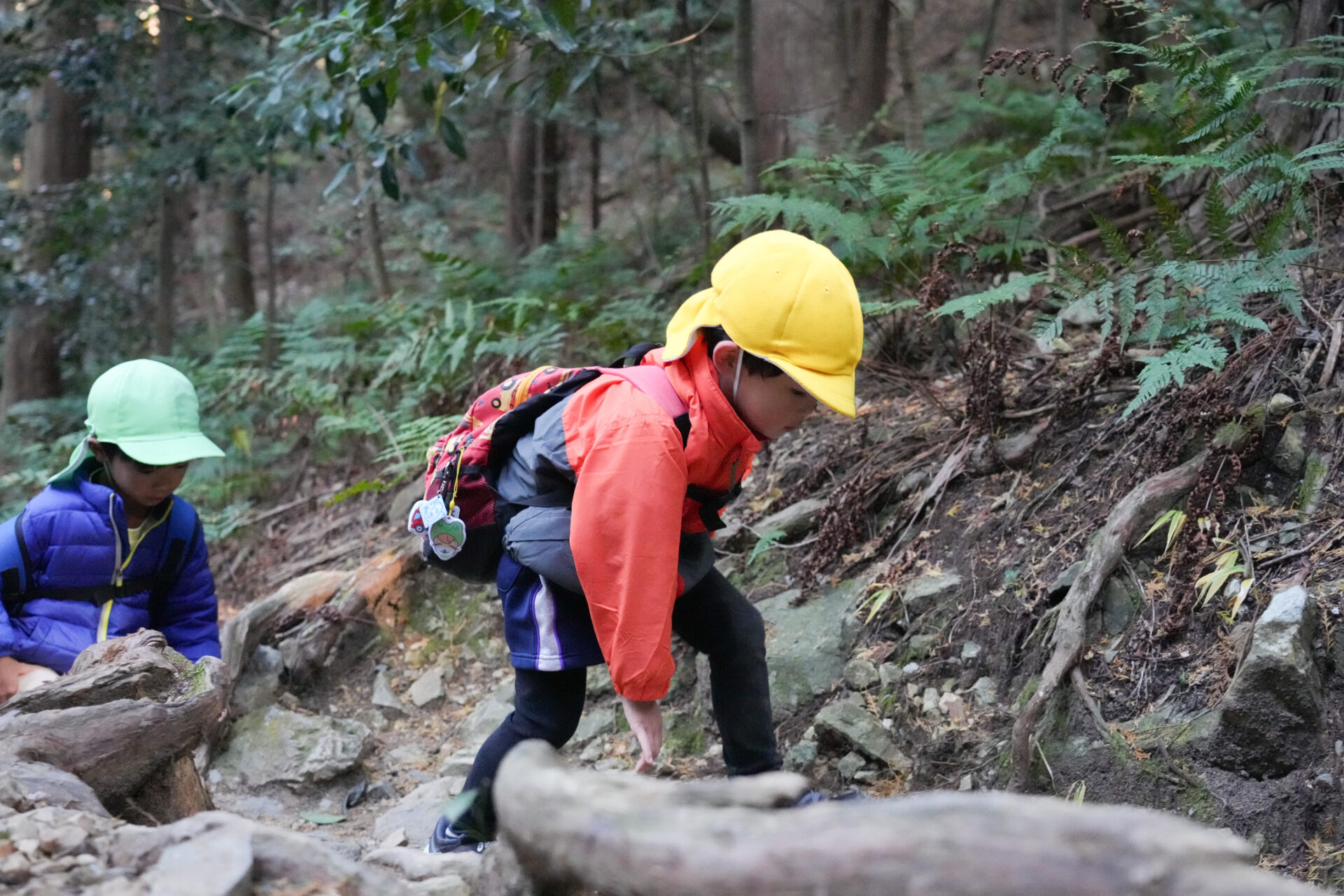岩場を「よいしょ!よいしょ!」と全身を使って進む子ども達・・・