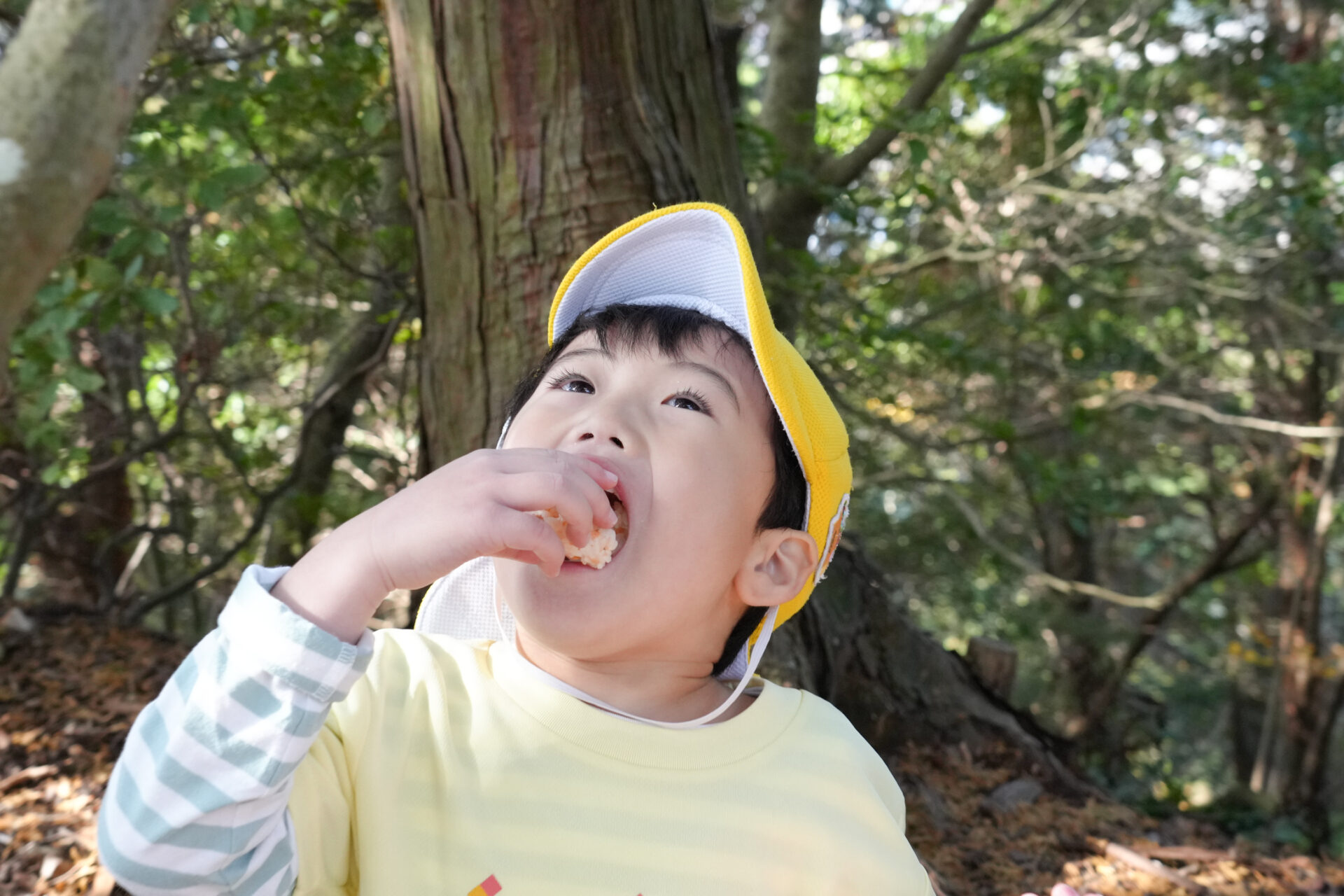 保護者の方の愛情たっぷりのおにぎりを頬張り、力を溜めて💪