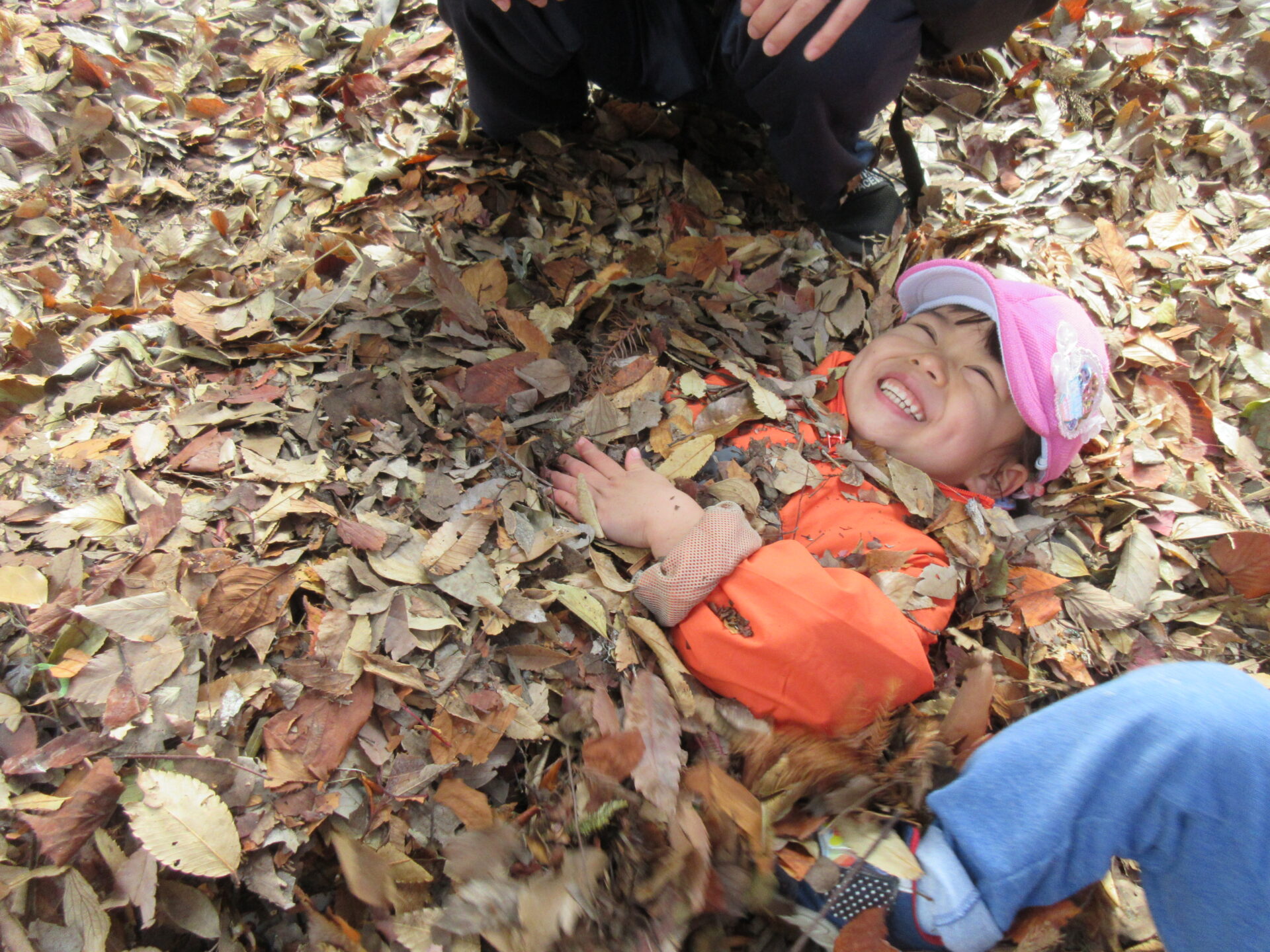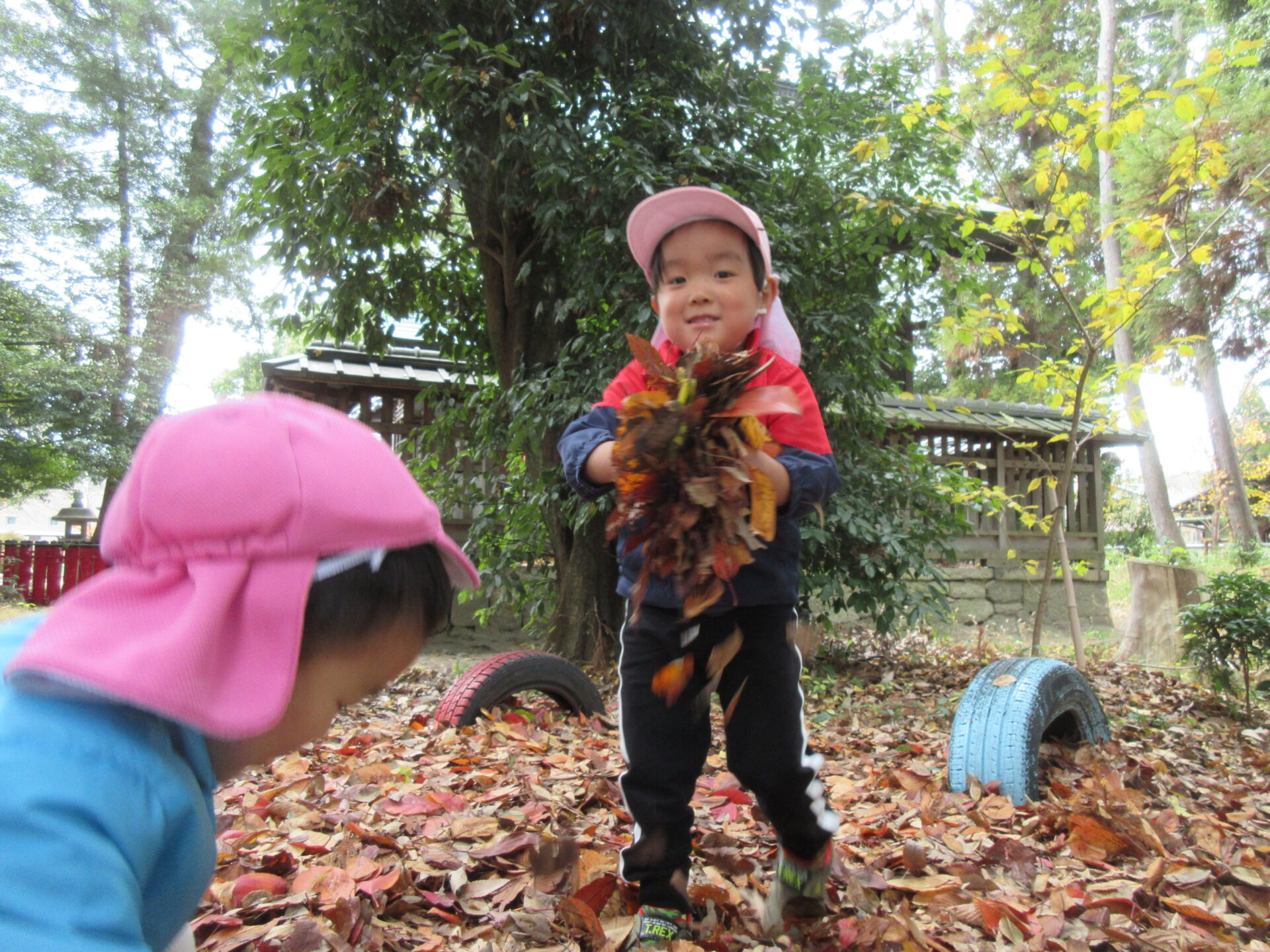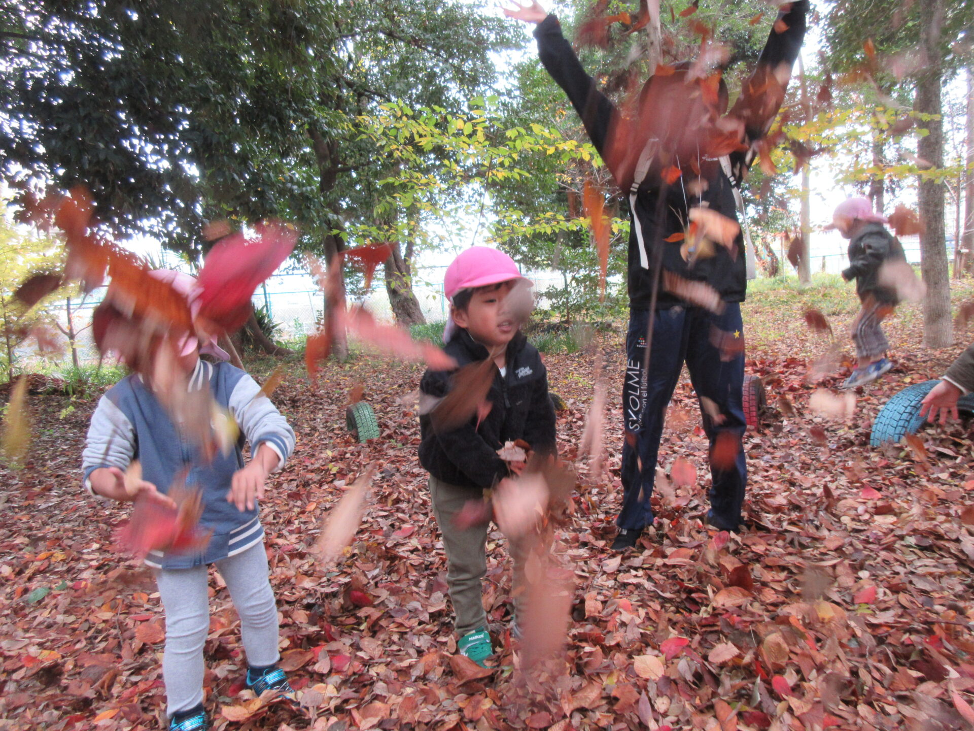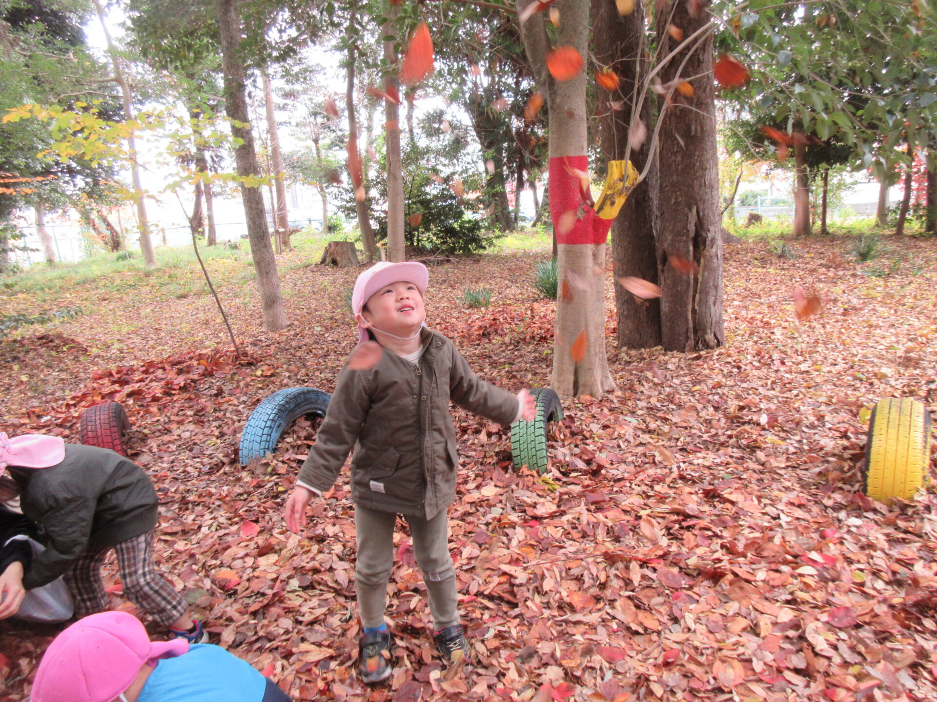 周りには、たくさんの落ち葉が積もっていて、これは遊ばずにはいられません!!