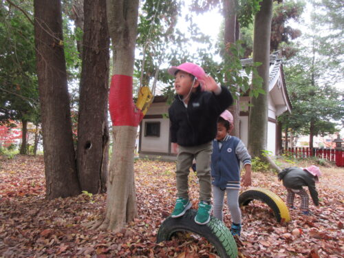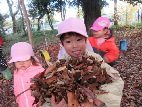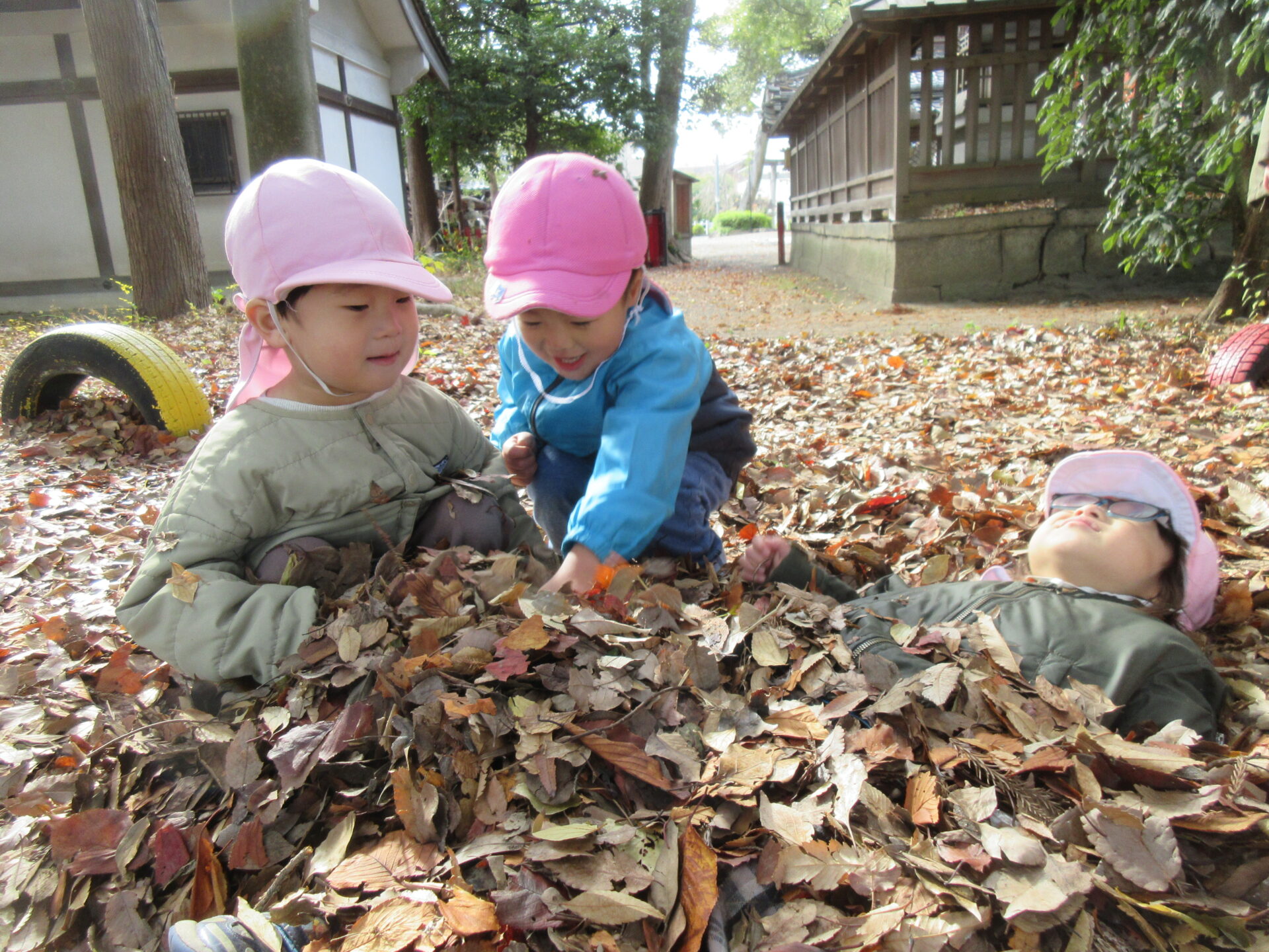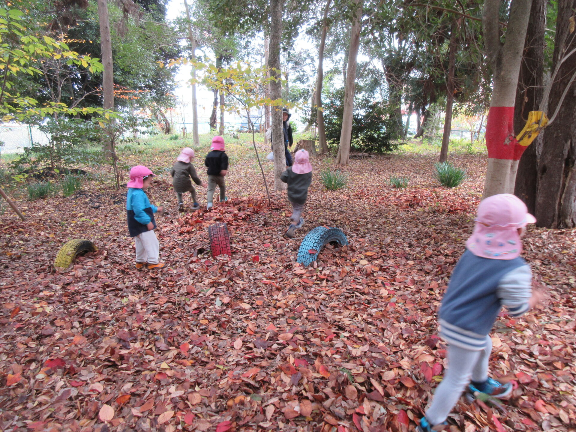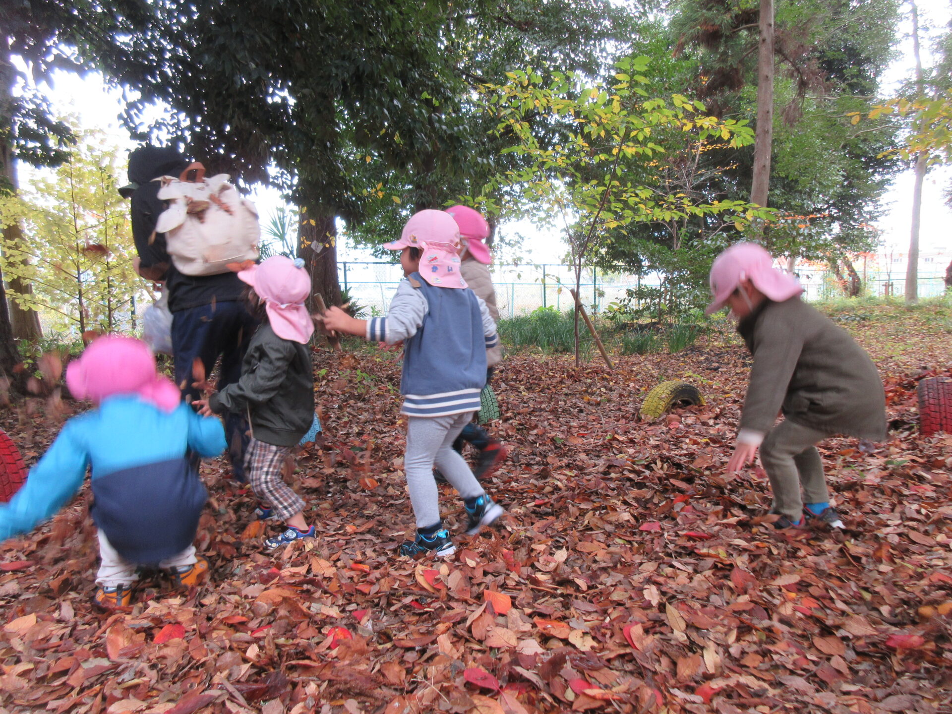 周りには、たくさんの落ち葉が積もっていて、これは遊ばずにはいられません!!