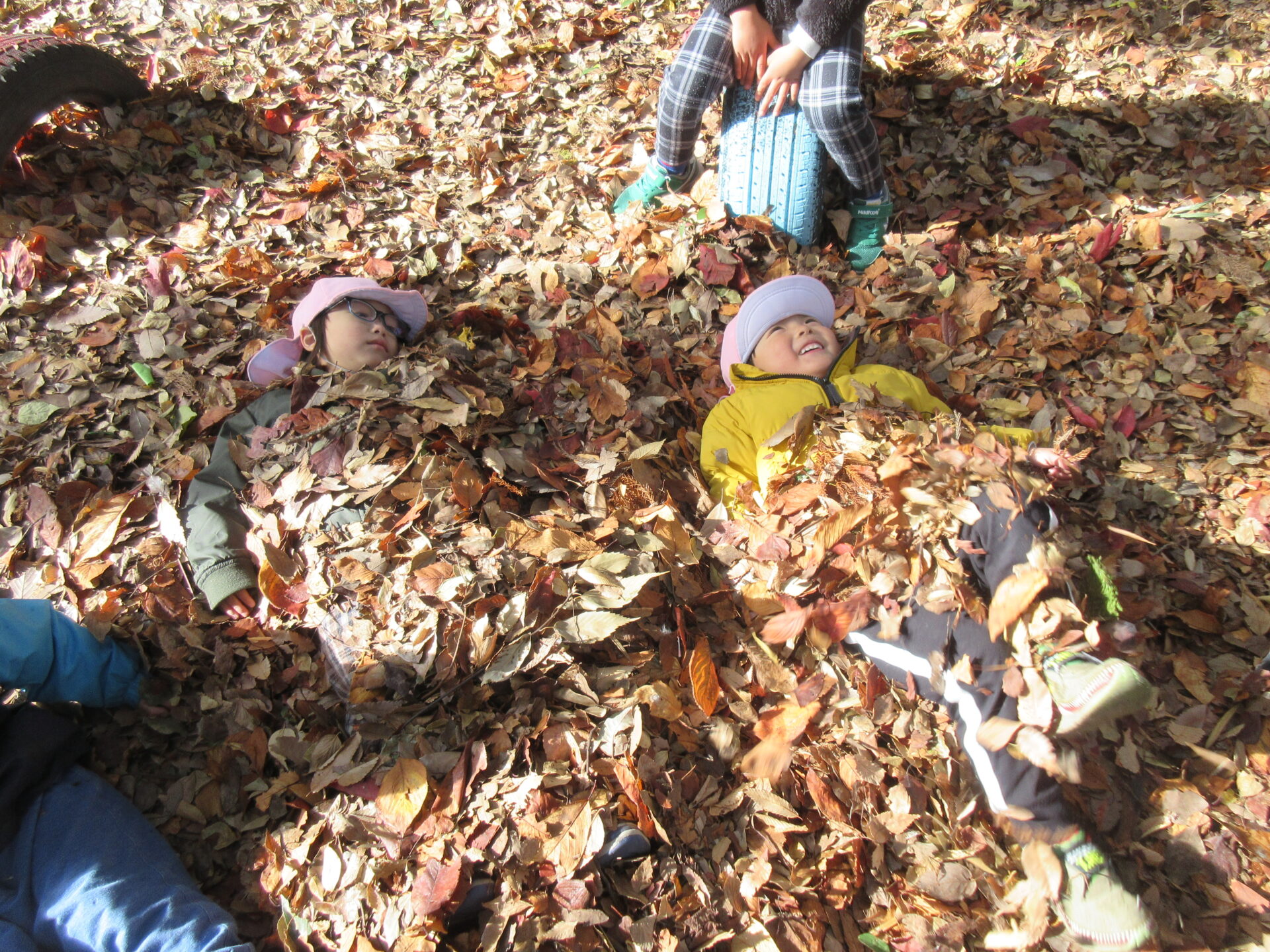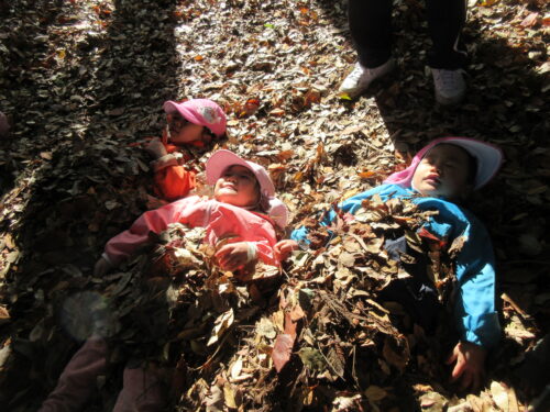 葉っぱのお布団気持ちいい~!!と一人また一人と寝ころびます。