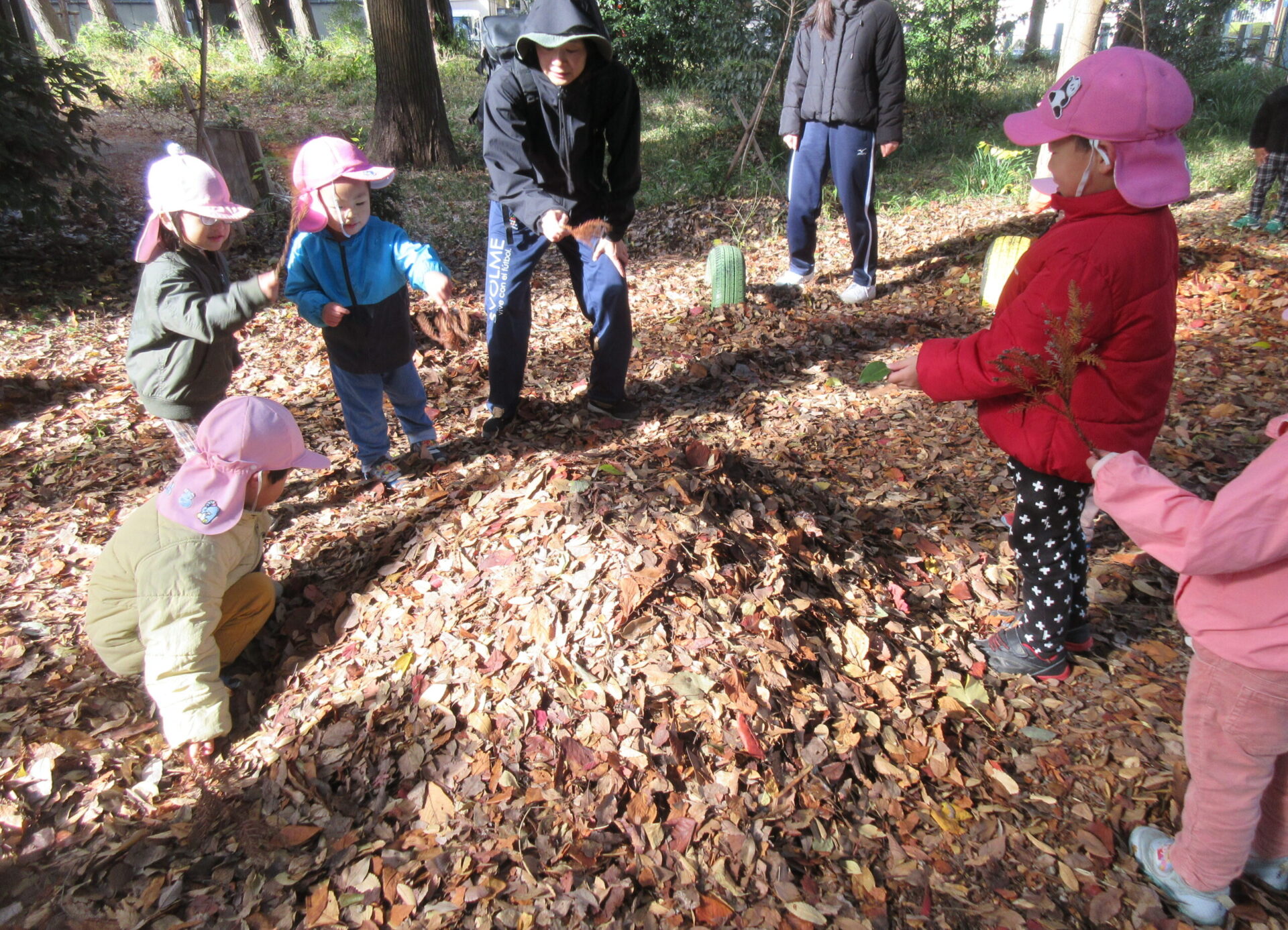 葉っぱを持って「待て待て~!!」葉っぱ鬼ごっこが始まりました♪