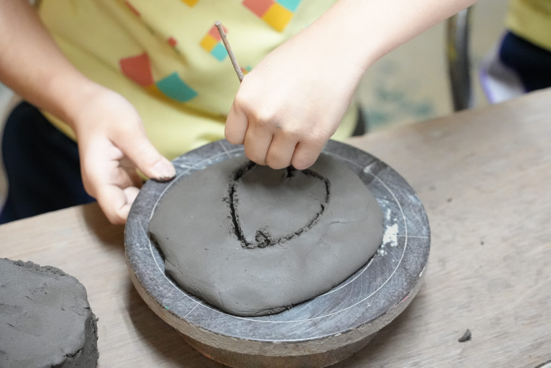 前日に「ハートのコップを作る~!」「お皿にカブトムシ乗せるわ!」と、どんな陶器を作るか想像しながらお家に帰った子どもたち。