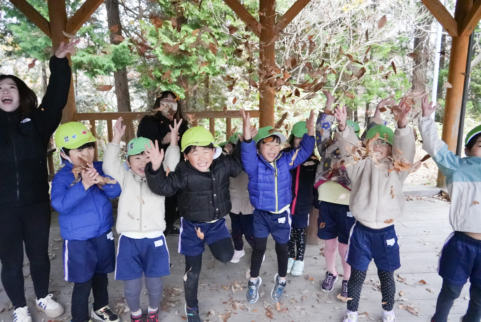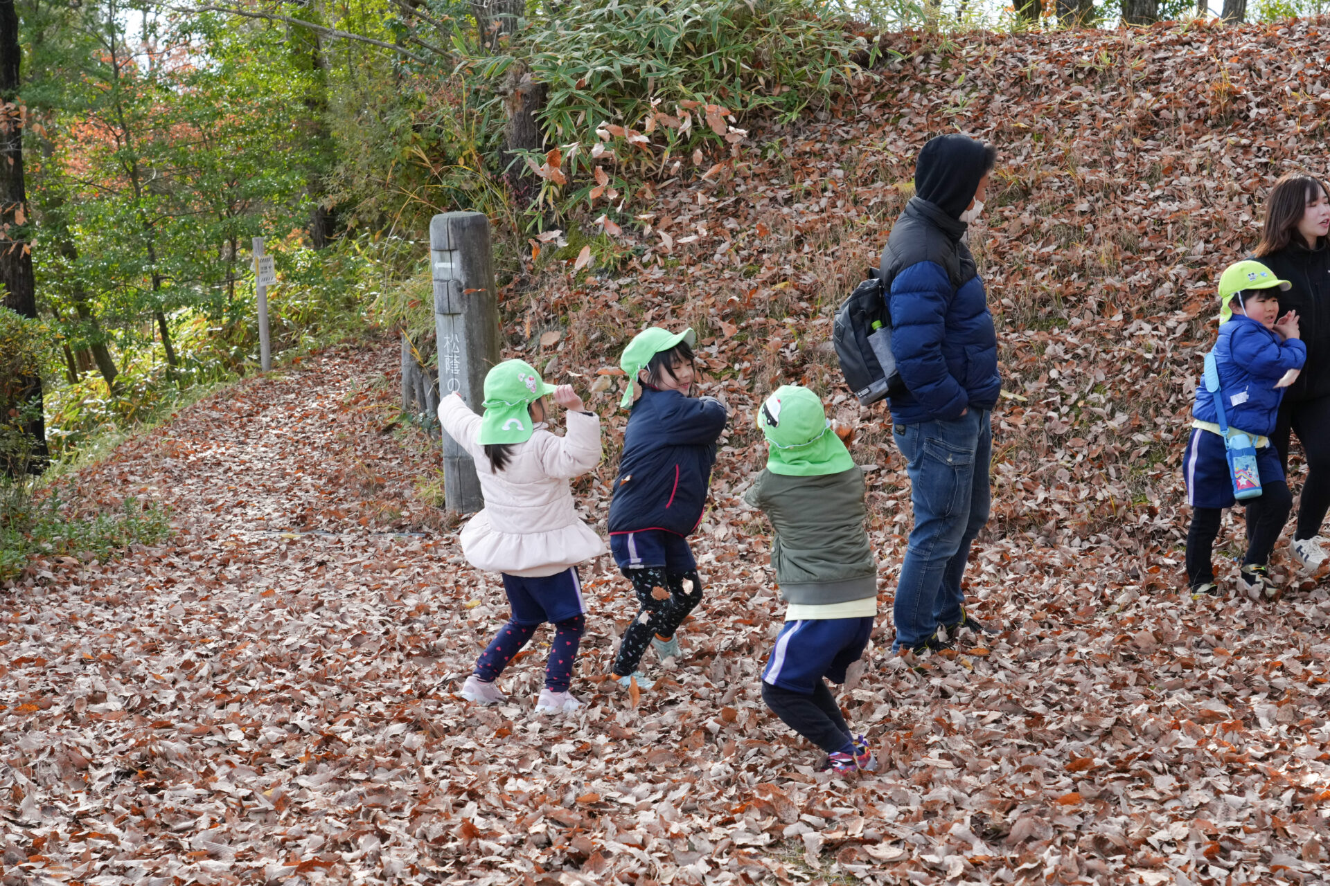 落ち葉がたくさんあり、すぐさま落ち葉遊びが始まります✨
