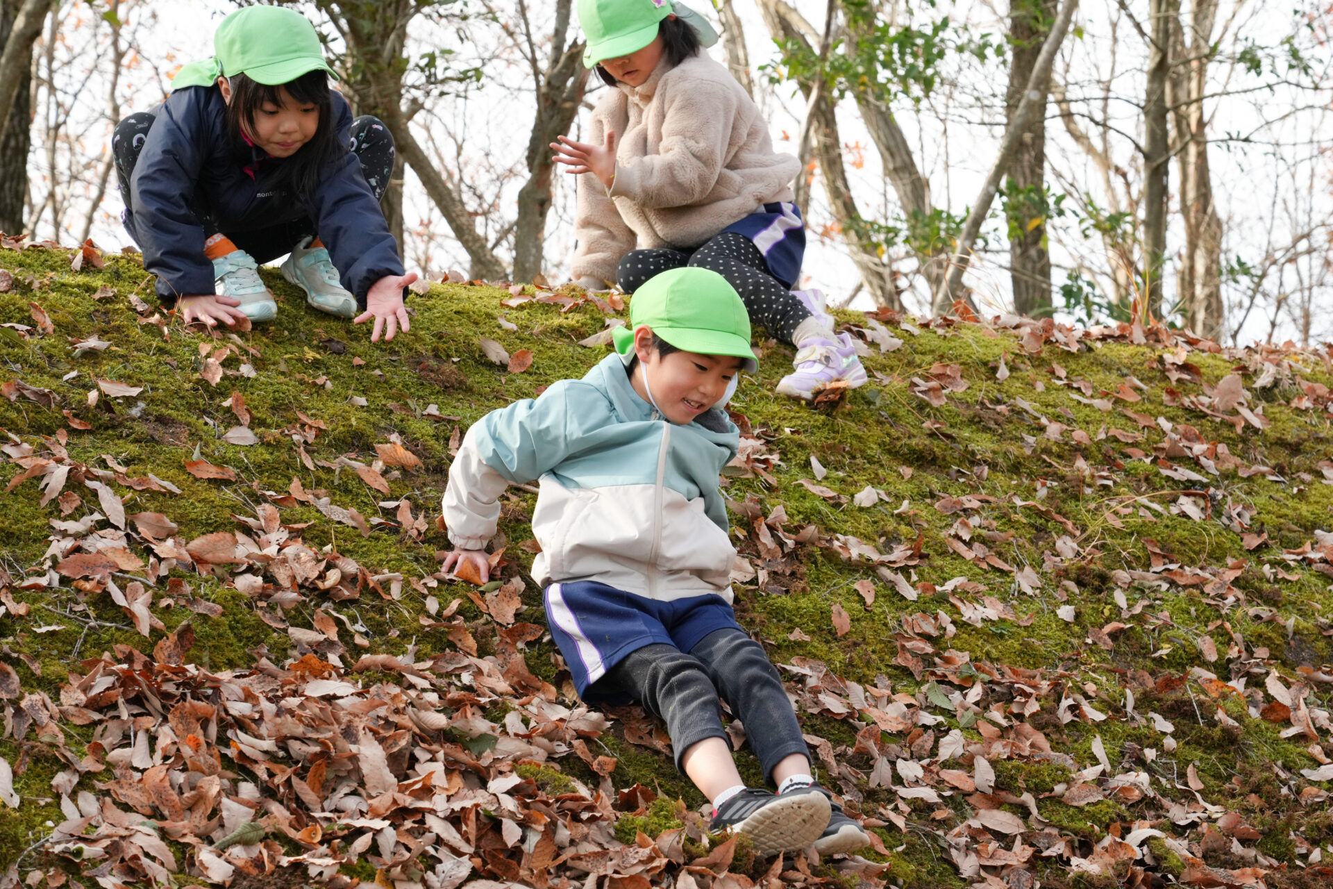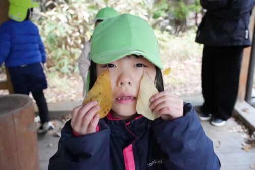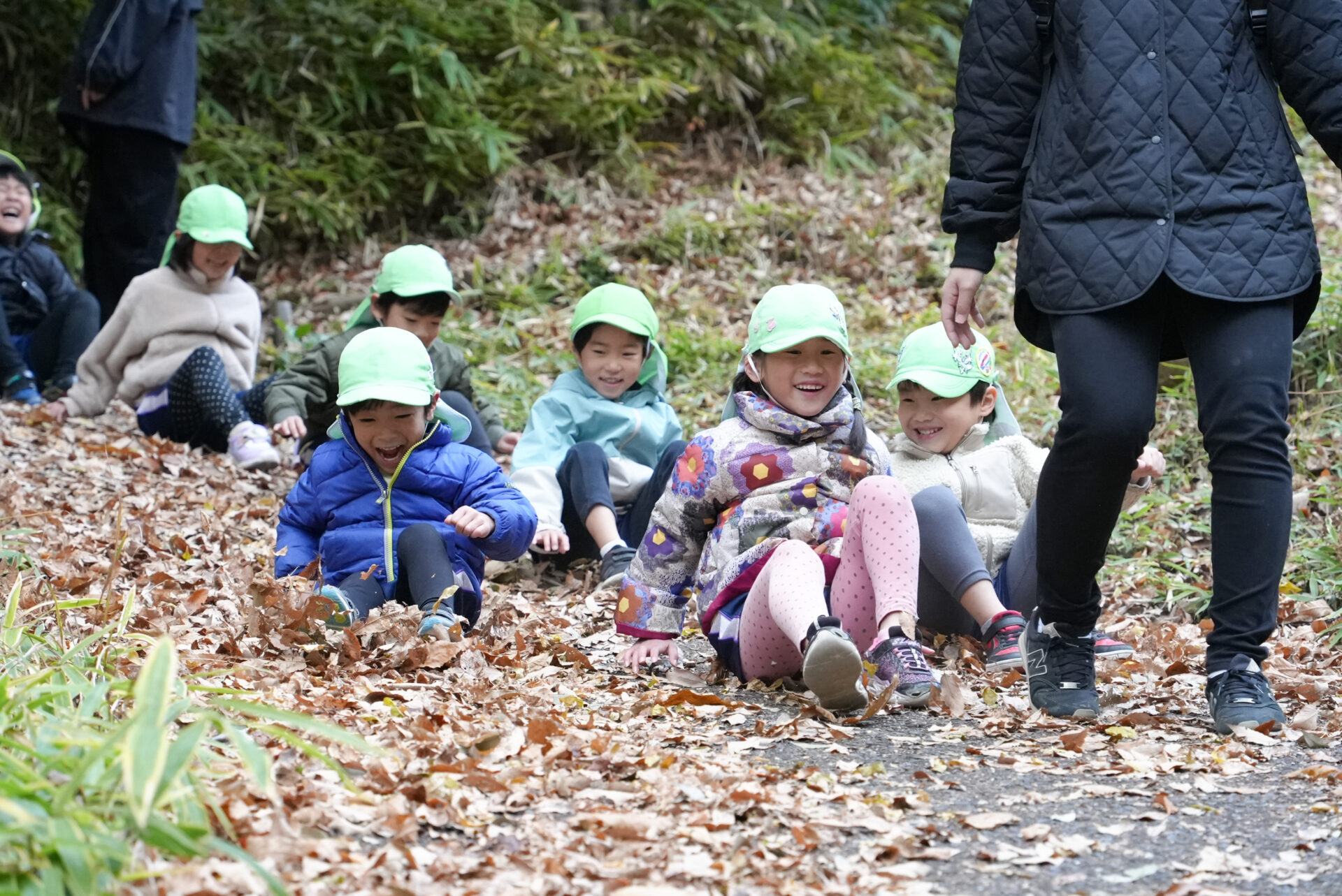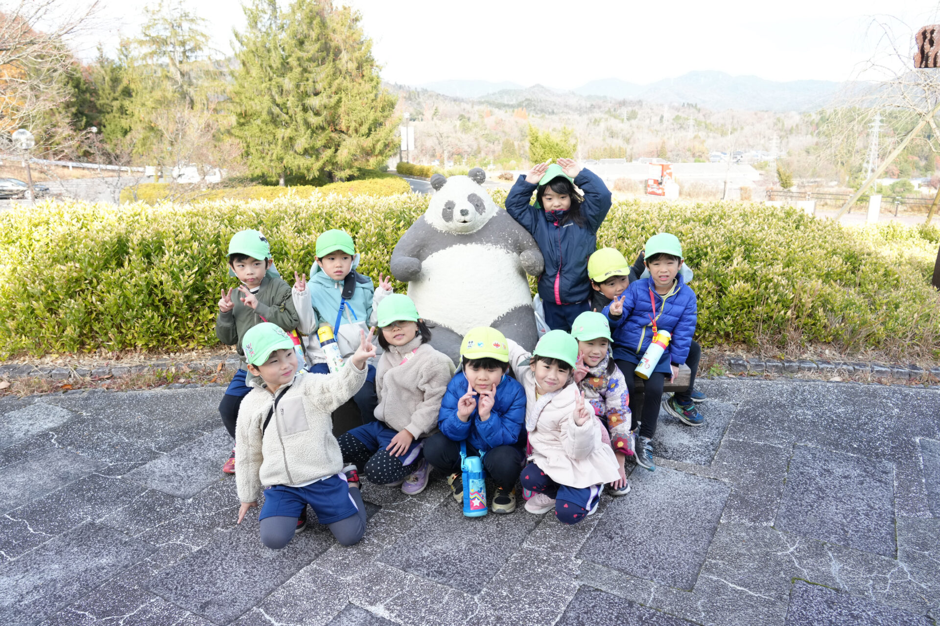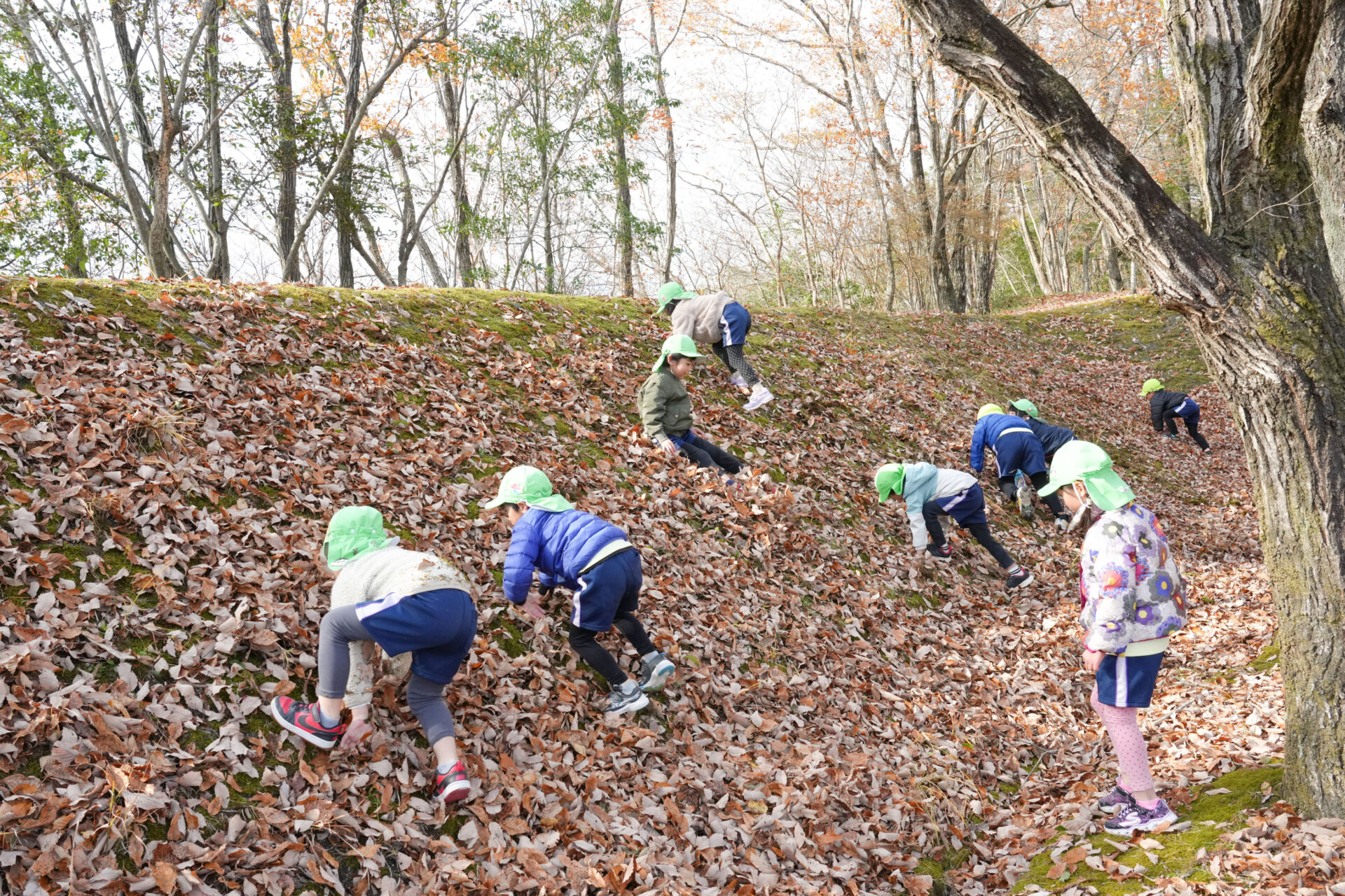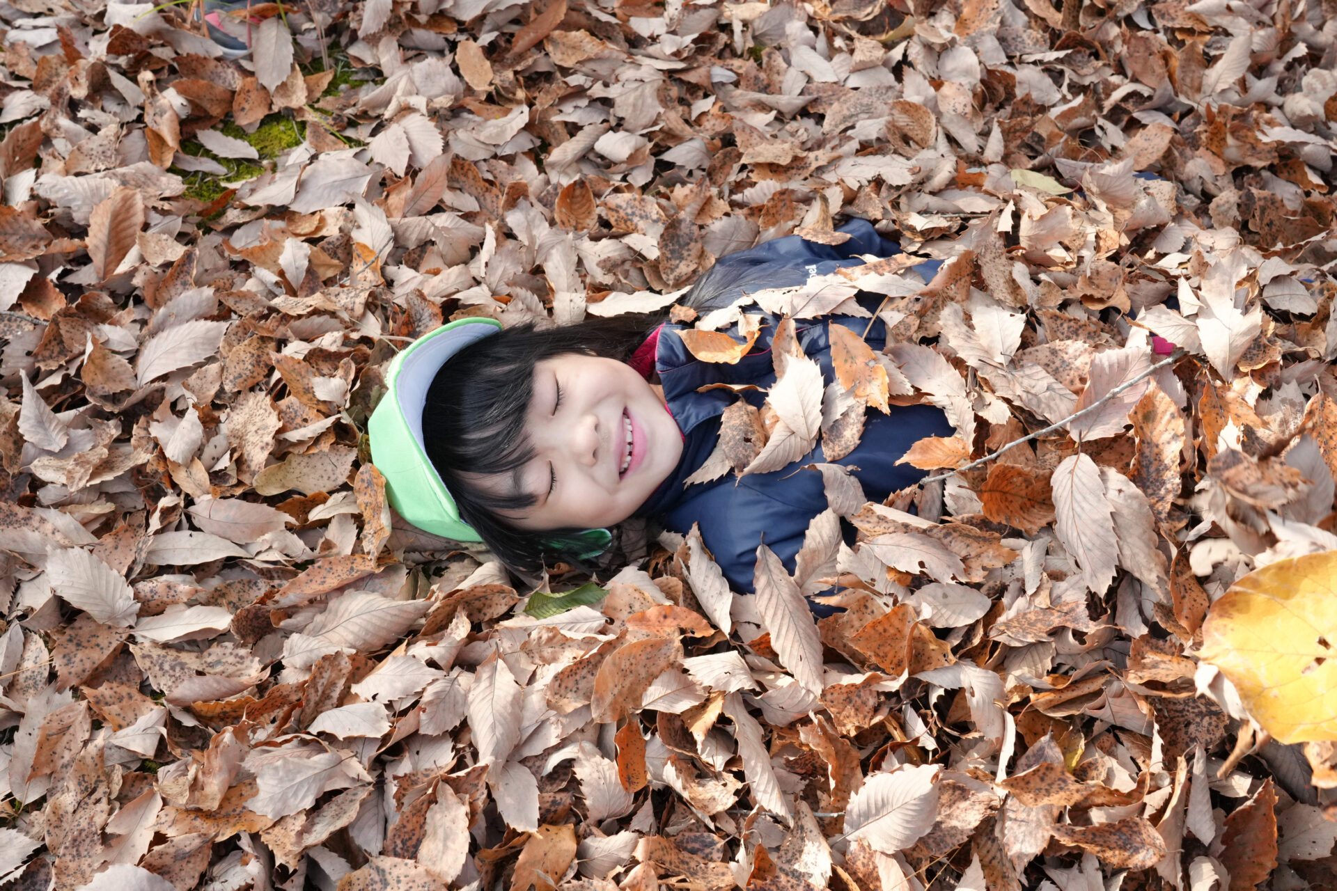 その後は、パンダを見つけて写真を撮ったり、たくさんの落ち葉をみつけてお布団みたいにかけたり、斜面を滑ったり…1日たくさん遊びました!