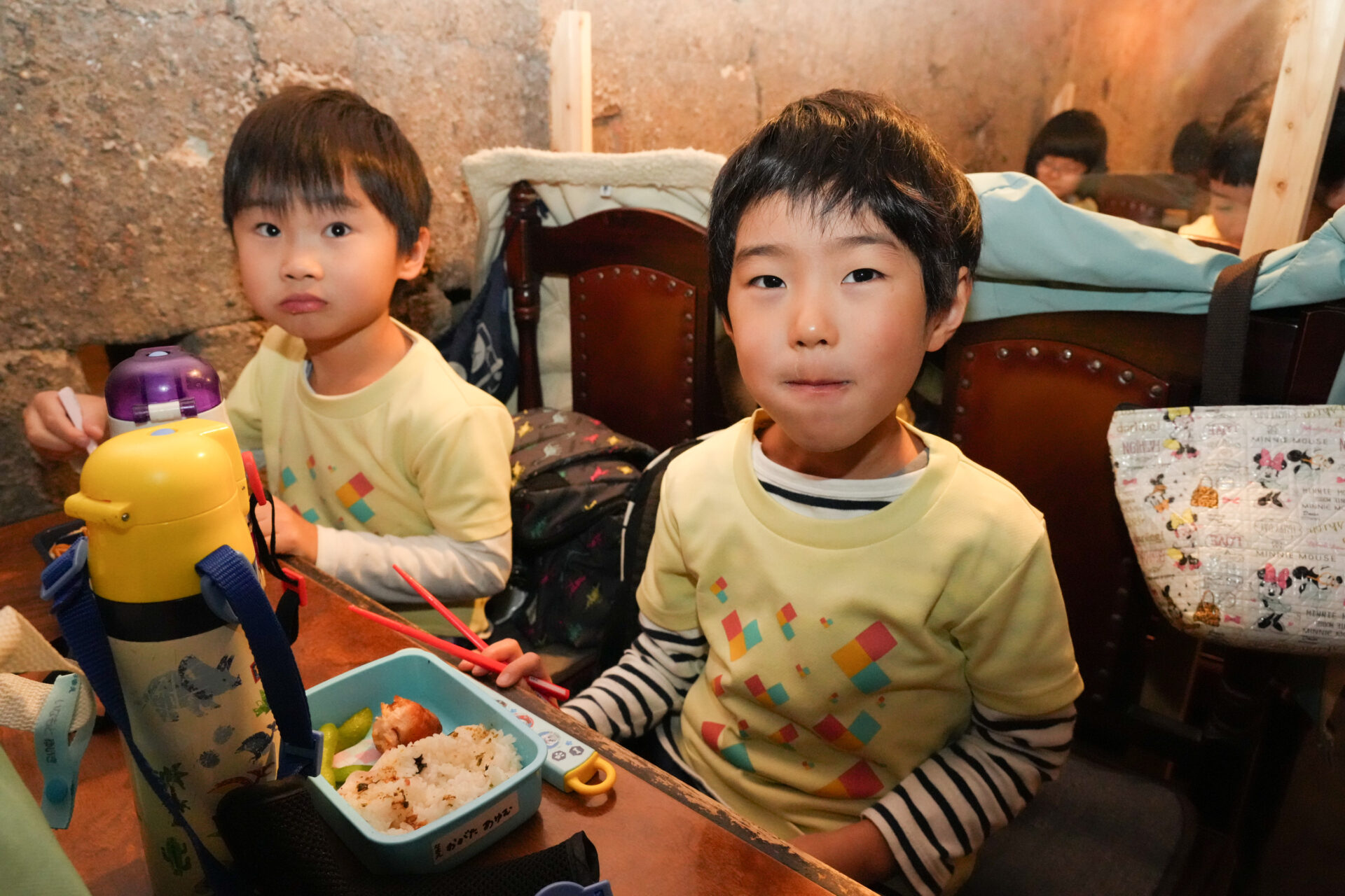 子ども達のテンションはさらに上がり、「あったかい!!」「洞窟みたいや~!!」と大盛り上がりでした(笑)