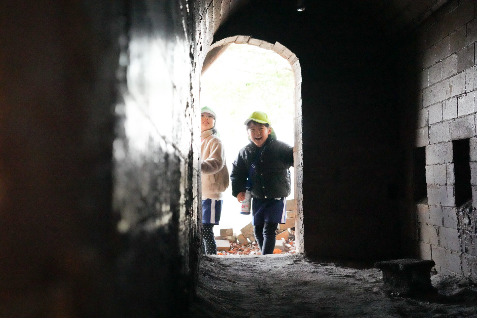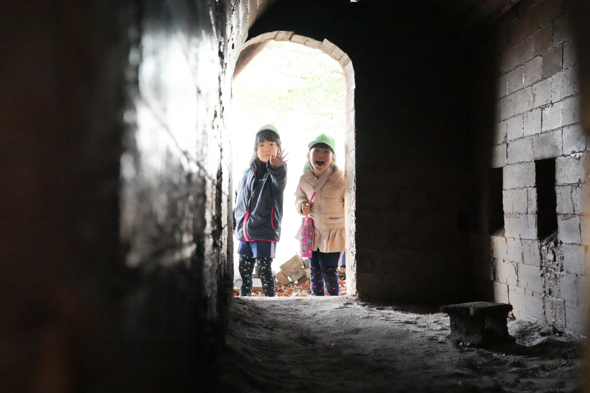 ぐるっとまわって見ると…「あっカメラマンさん!」と、トンネルの入口から覗いて嬉しそうな子どもたちでした。