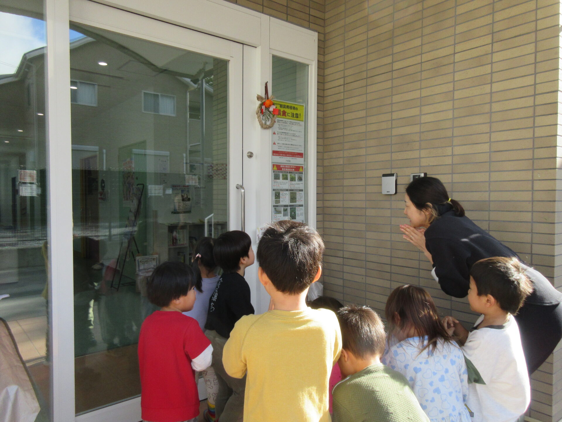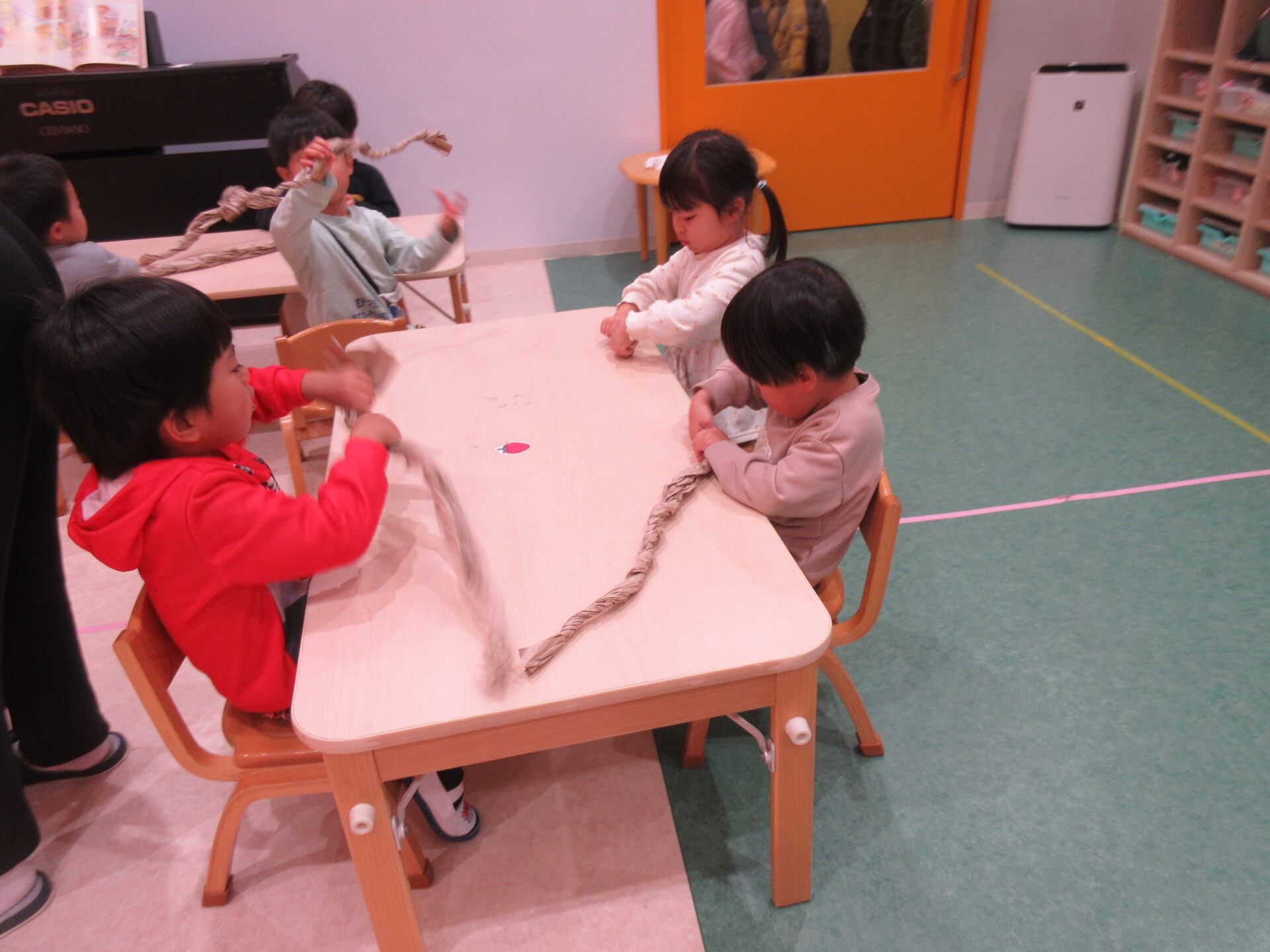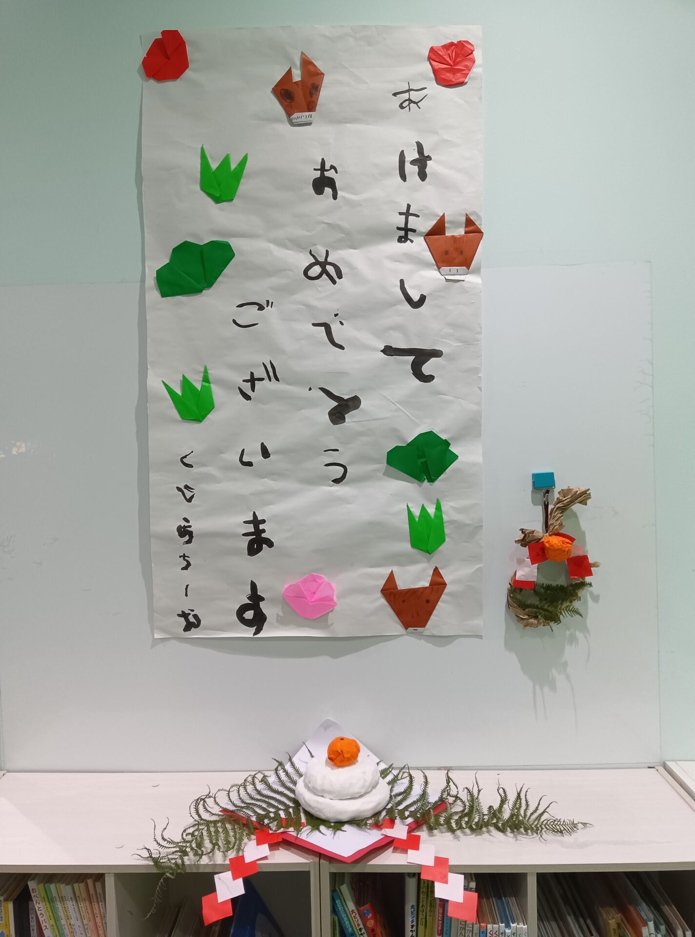 完成したしめ縄・鏡もちは、玄関や各クラスの扉に飾っておきますね♪