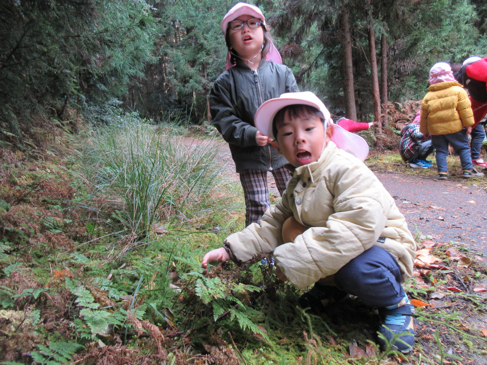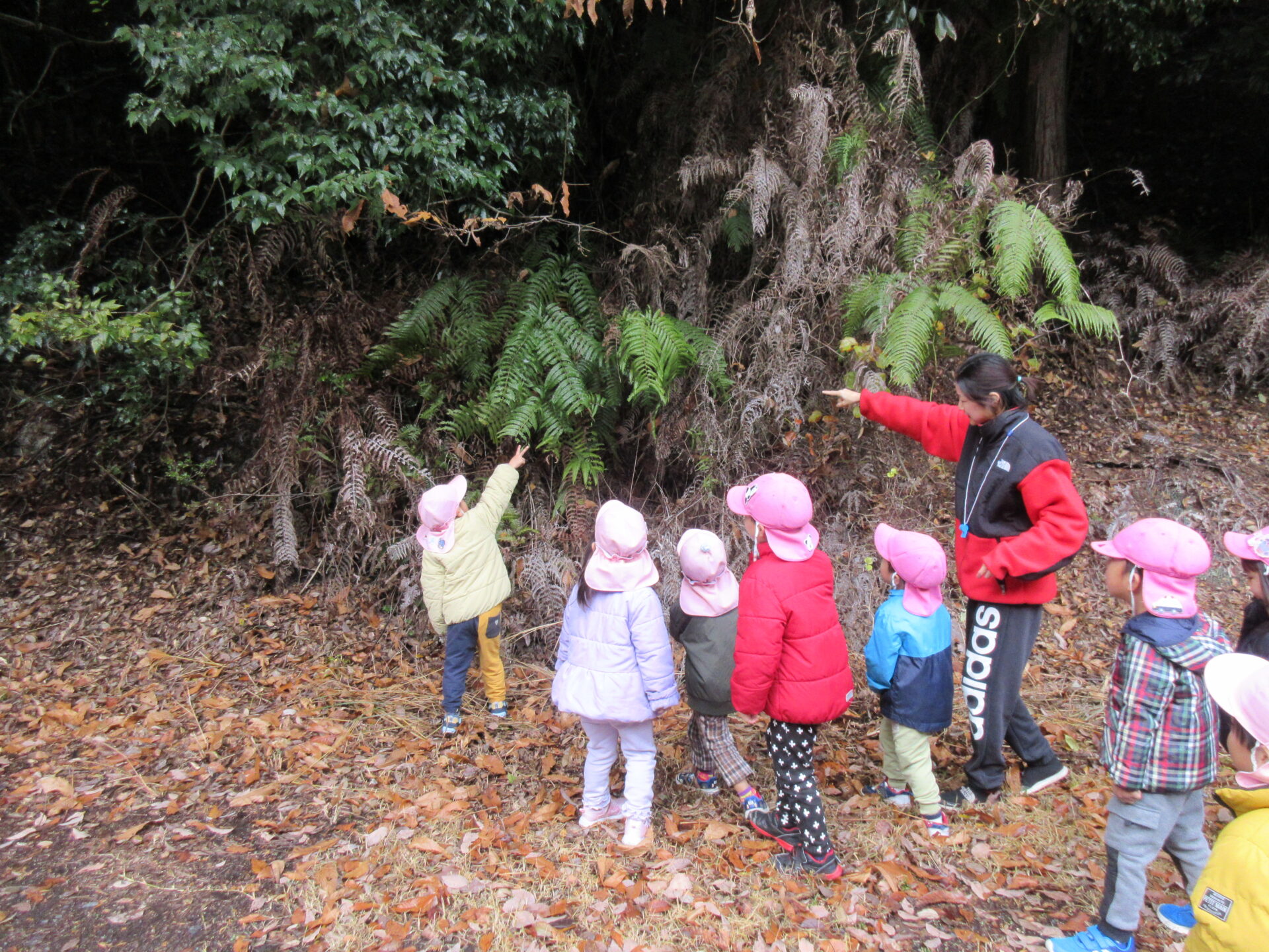 見つかって嬉しい子どもたちは、次々にシダの葉っぱを見つけて「これは裏が緑やわ」と確認していました♪