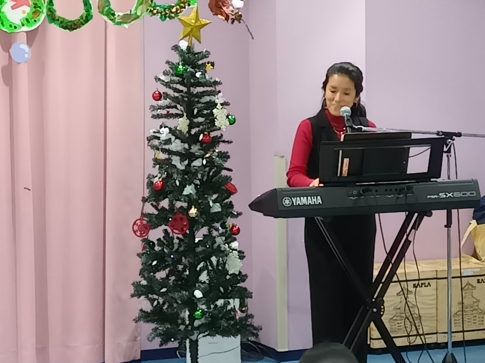 サンタさんが帰ってからも、みんなで『あわてんぼうのサンタクロース』を歌い、歌や音楽がいっぱいの楽しいクリスマス会でした。
