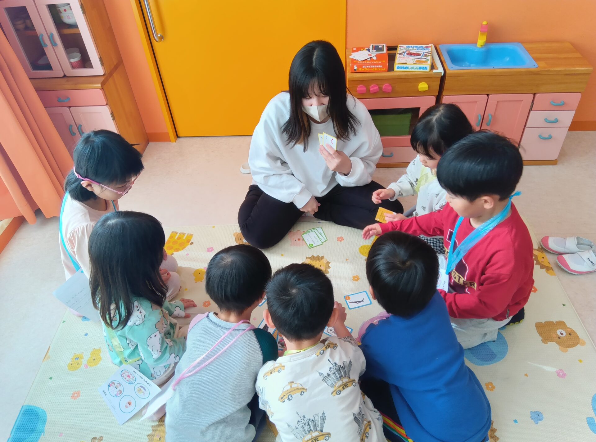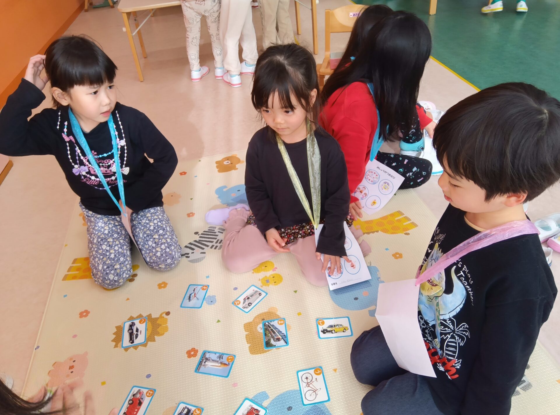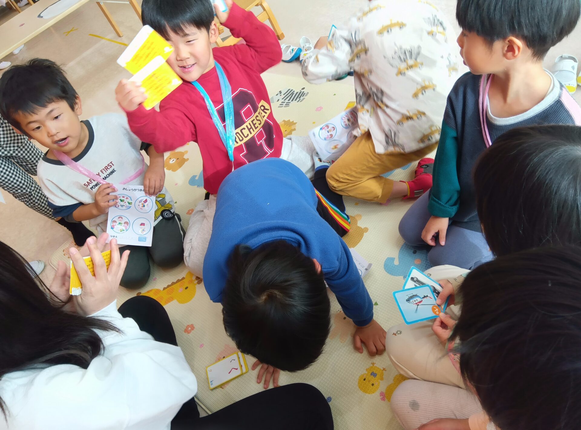 そんな1月7日(水)に、幼児クラスのみんなでお正月遊びをしました。「お家でもした!」と、ご家族での楽しかった経験を教えてくれるお友だちもたくさんいました😊