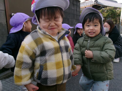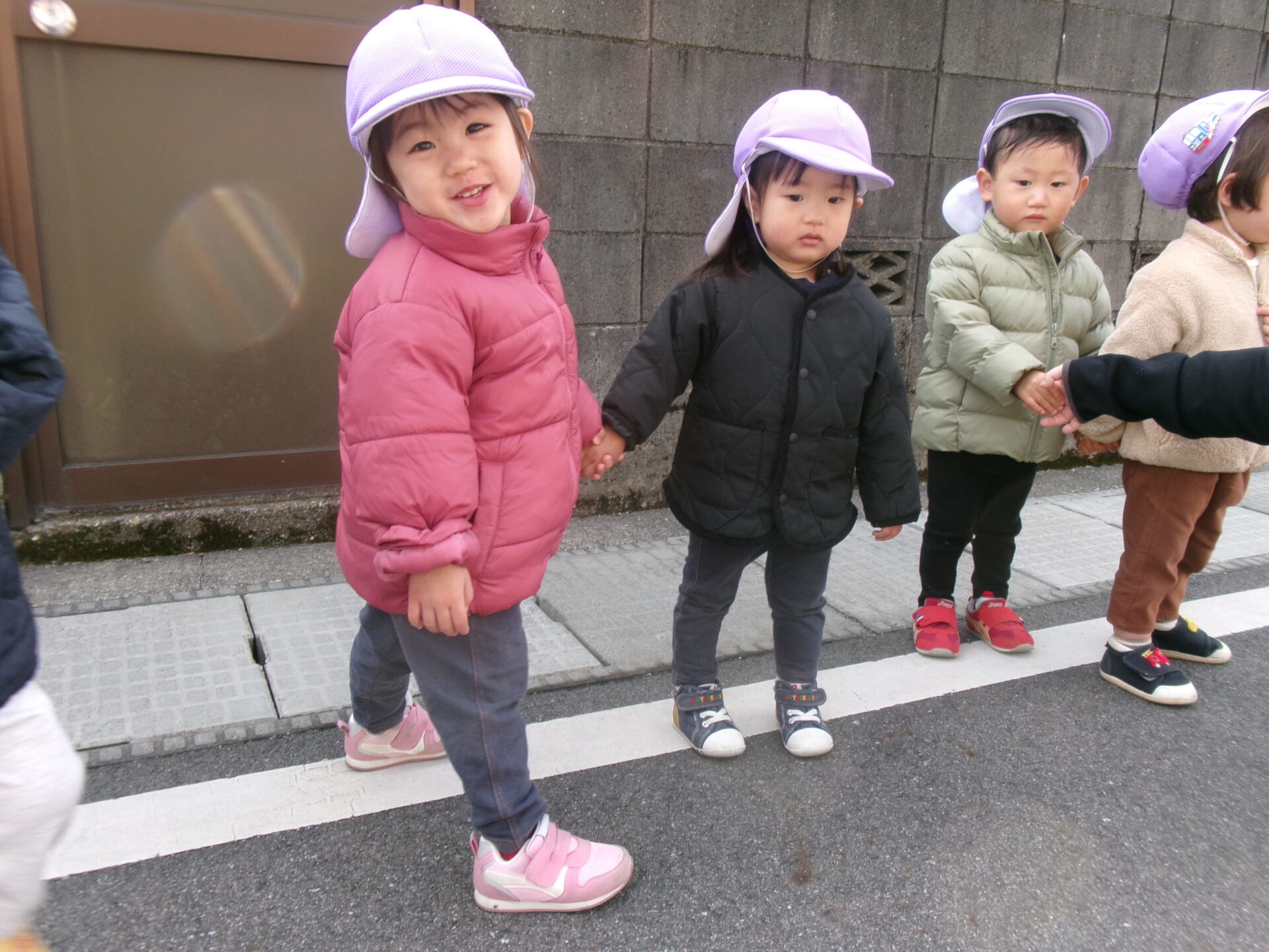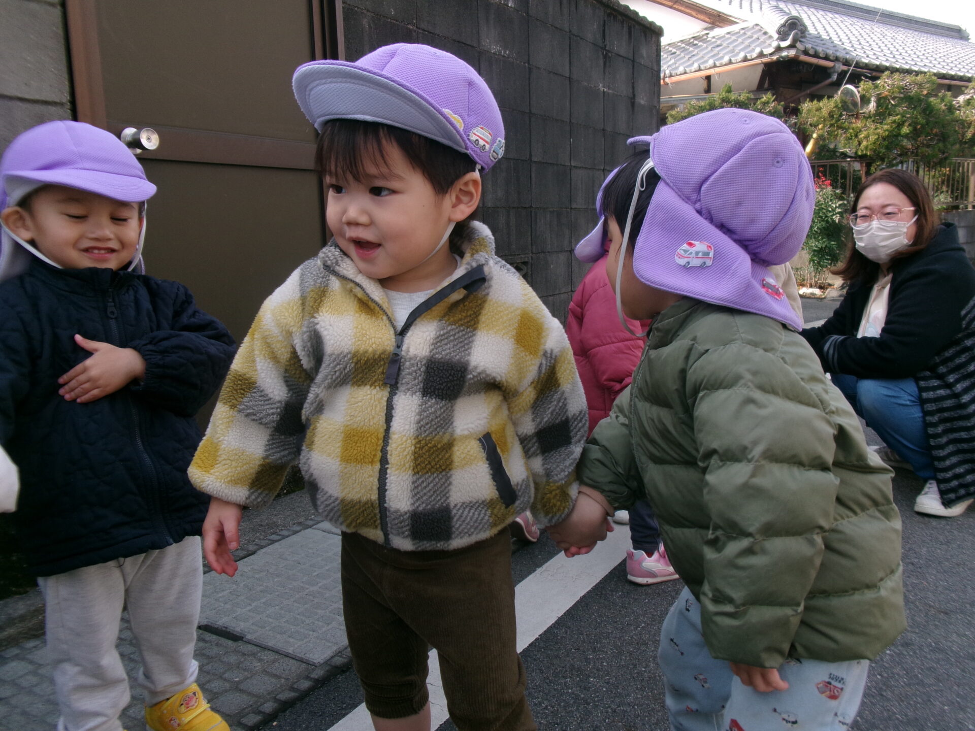 お散歩で公園へ向かう道中、ネコに会えることを楽しみにしている子どもたち。