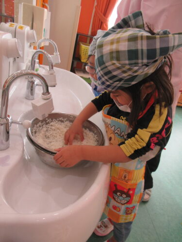 そしてお米洗い・・・ガシガシと一人ずつ洗ってくれました。