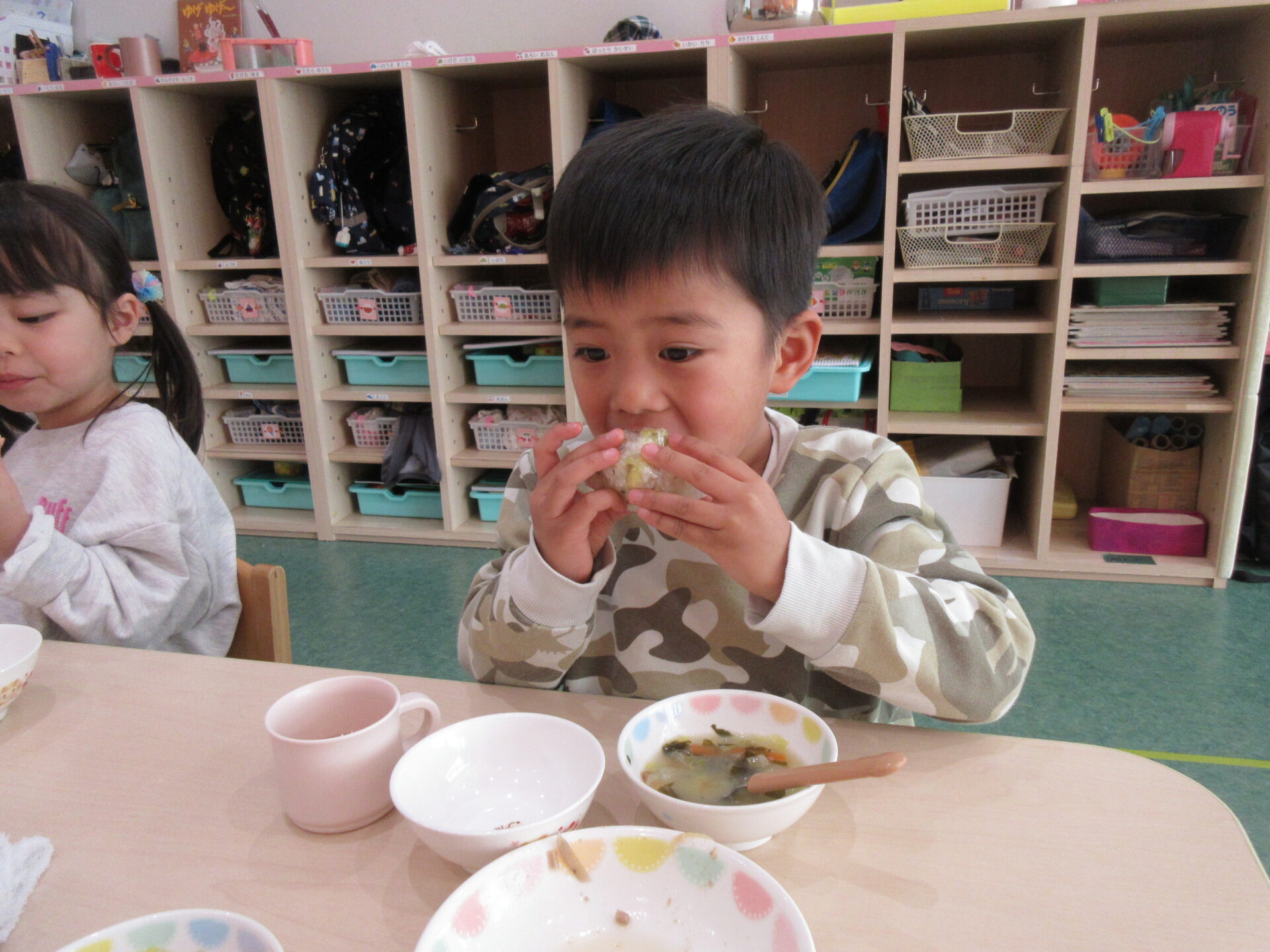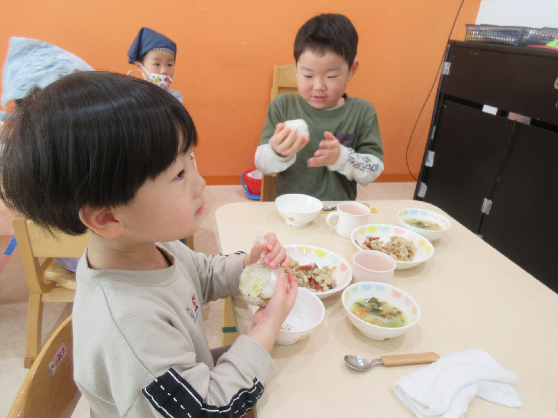 自分の食べる分をおにぎりにして、みんな一緒に「いただきまーす!!」
