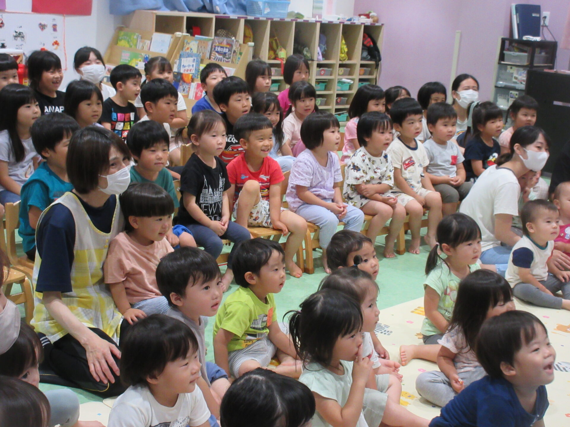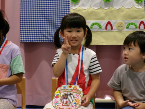 たくさんのお友だちの前で、ちょっぴり恥ずかしそうにしながらも、上手にインタビューに答えてくれました。