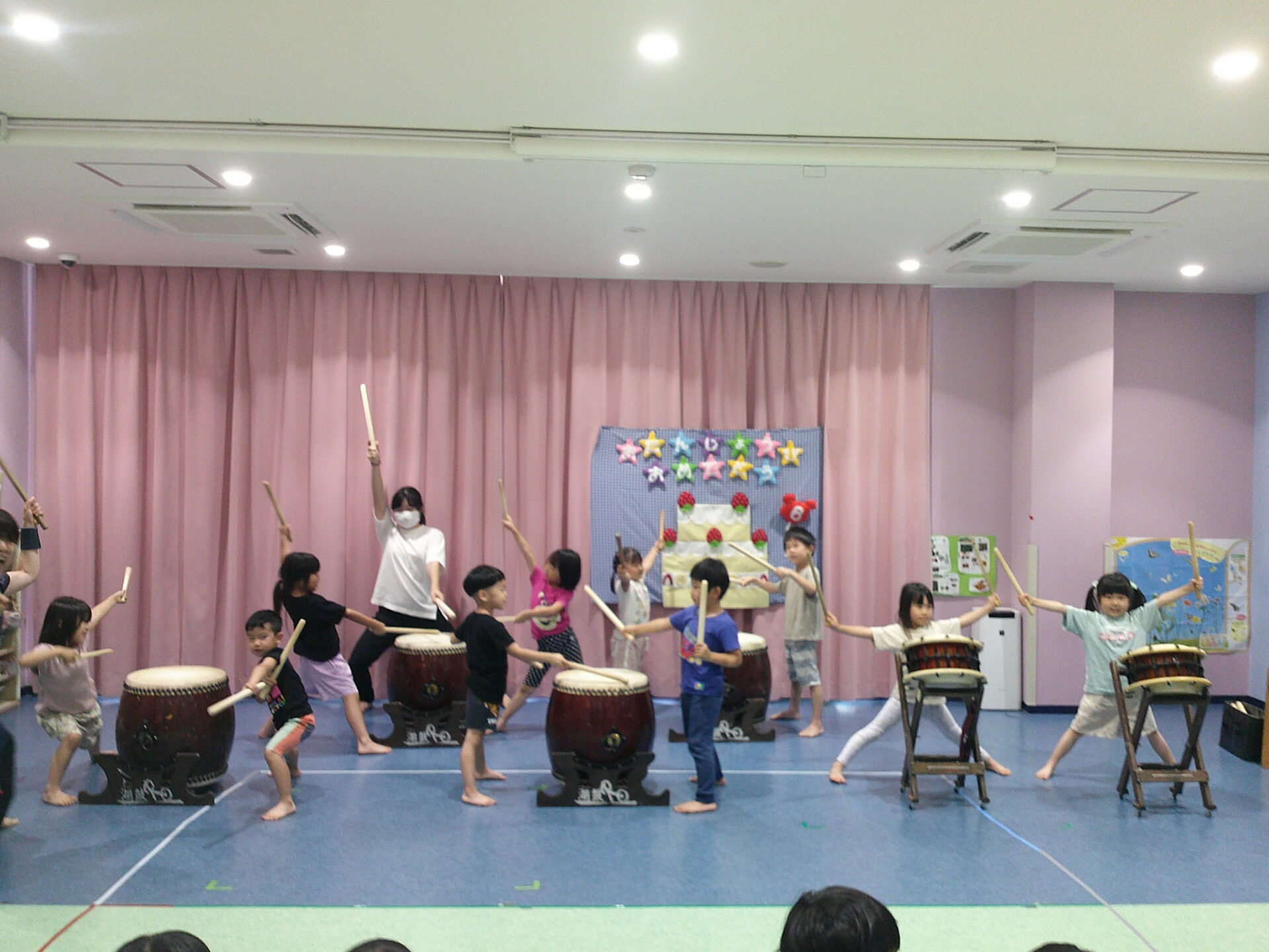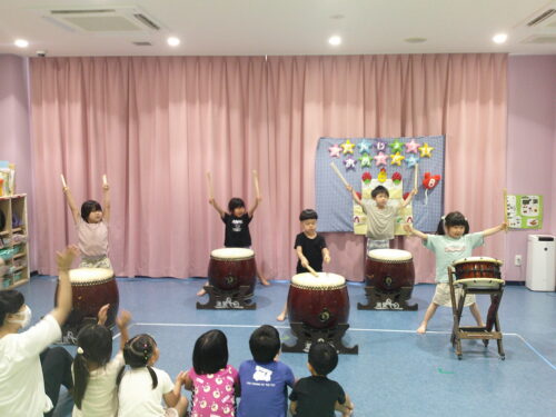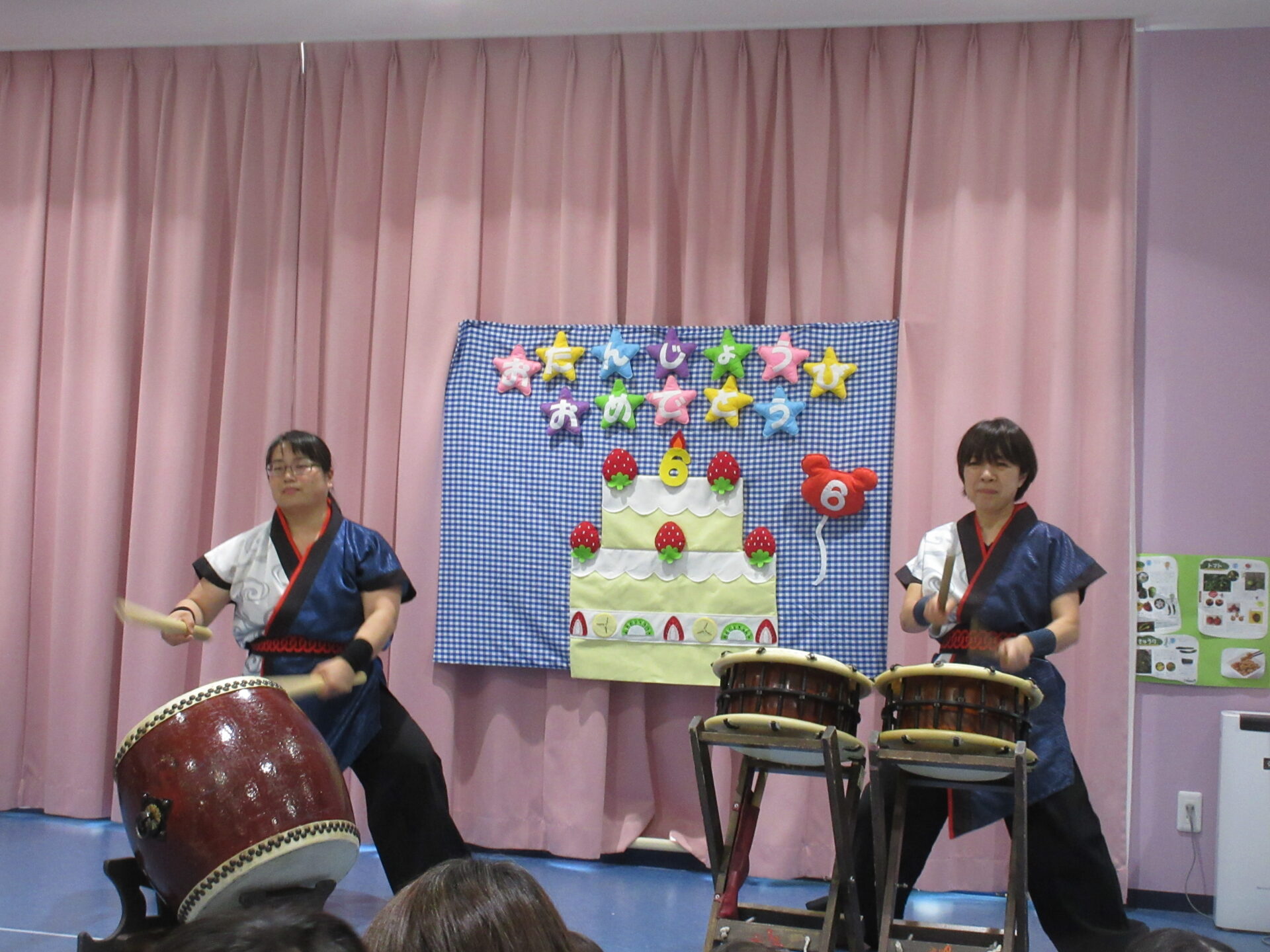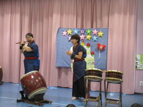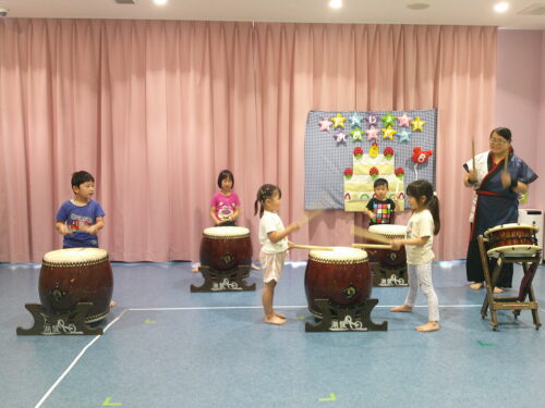 そんなお誕生児さんをお祝いする、今月の出しものは…和太鼓演奏です。