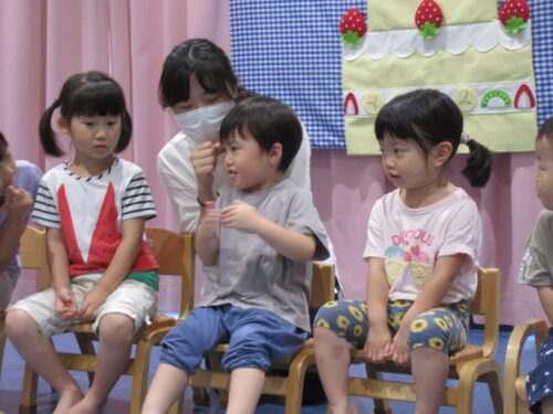 子どもたちがよく知っている『かたつむり』『かえるの歌』そして『HAPPY BIRTHDAY』の演奏です。
