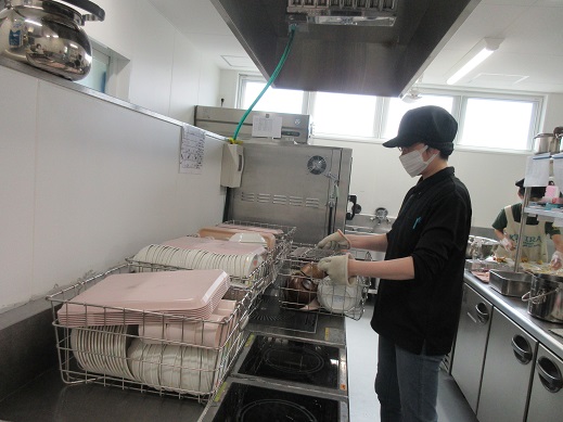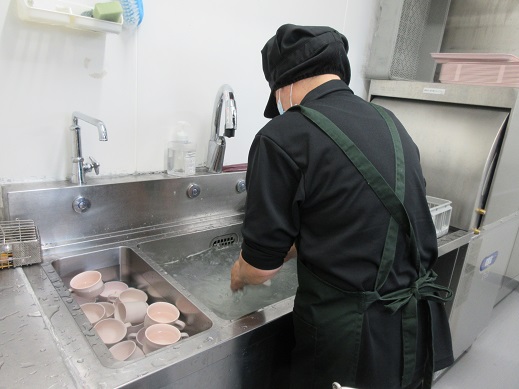 調理補助員の2人は、午前と午後に分かれての出勤になりますので、常時2人、又は3人体制となります。