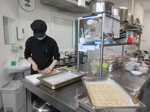 そして、こちらでは、おやつの準備。