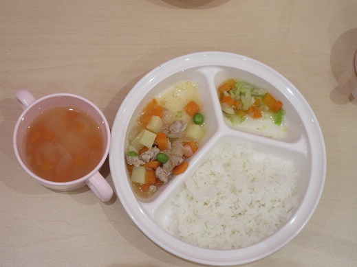うみチームの離乳食は、子どもの発達に合わせて作っています。形状や硬さに配慮して、完了に近い後期食です。