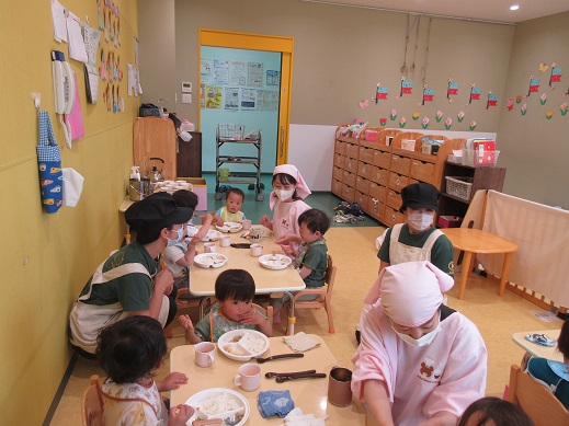 たくさん遊んでお散歩から帰ってくると、誰からともなく「おなか空いた~」「今日の給食何やろう?」という声が聞こえてきます。