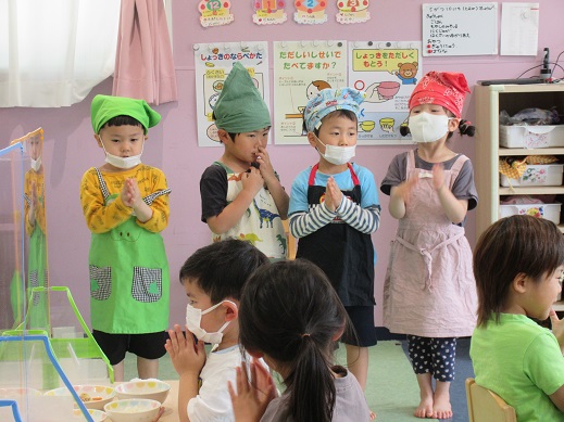 保育者「肉じゃがと」 子どもたち「肉じゃがと」