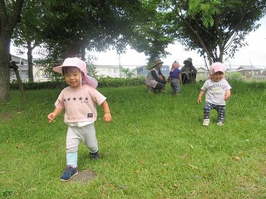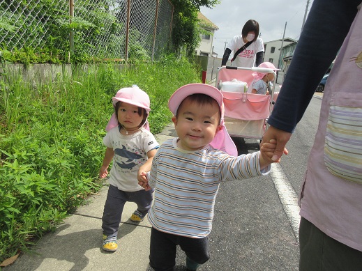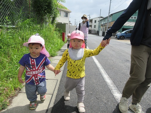 高月齢児は、友達と手を繋いで歩くことが、だんだんと上手になってきています。