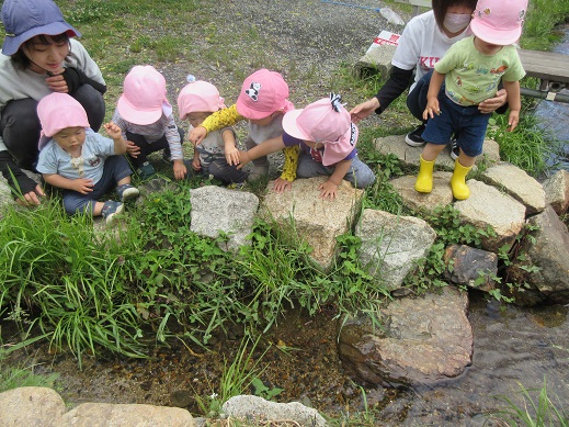 三田川ふれあい公園は、距離にすると園から550mほど。音羽山から晴嵐南部を通り、瀬田川へと続く『三田川』が公園内を流れています。季節の草花や、もう少し気温が上がってくると、サワガニやホタルが見つけられたりする、住宅地の真ん中とは思えない、自然豊かな公園です。