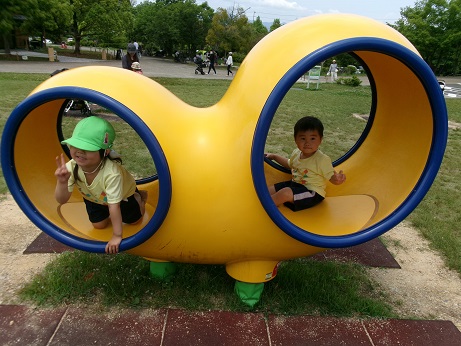 ちょっと怖い遊具も、お父さんやお母さんに見守ってもらいながら楽しみました。