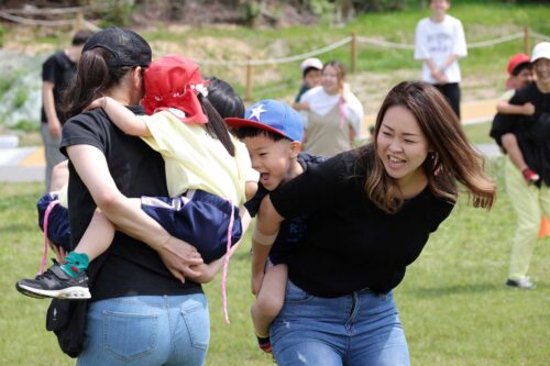 保育者の心配をよそに、大ハッスルのお父さん、お母さんたち。