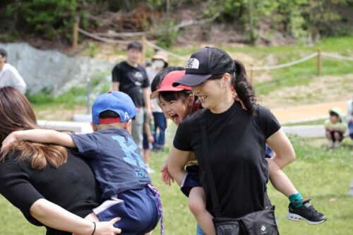 初めてのことなので、何がなんだか、おんぶされたままの3歳児・にじチームさん(笑)