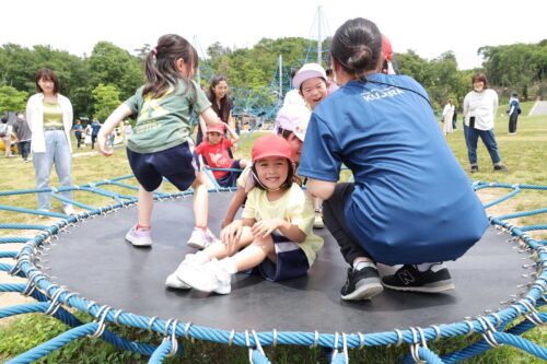 お友だちと誘い合い、トランポリンやロープジャングルジムに挑戦!!