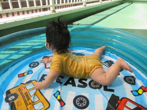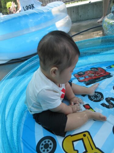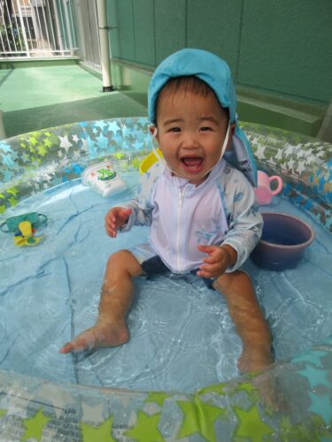 保育園で、初めてのプール遊びをしている、うみチームの様子を紹介します!
