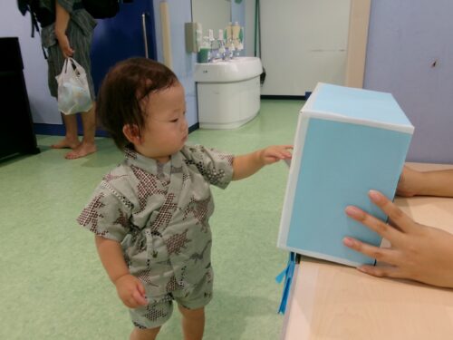 恐る恐る箱に手を入れるお友だちもいれば、一度に何枚も取ってくれるお友だちもいました(笑)