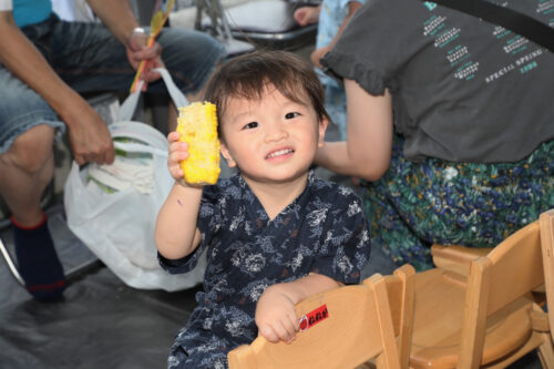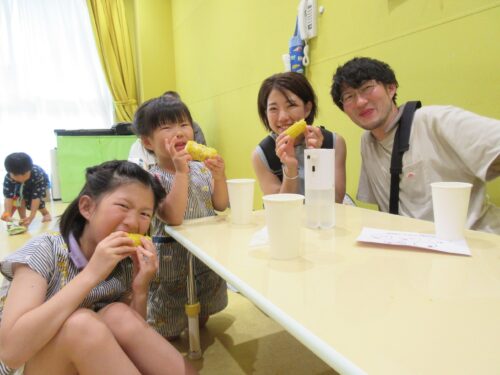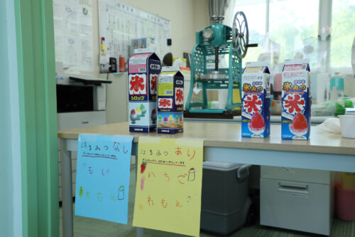 実は事前に、「いくら5類に移行したからと言って、食べ物の模擬店はどうなんかなぁ?」「でも、せっかくやし、夏まつりらしいお店は出したいよね・・・」などなど、職員間で会議に会議を重ね、「とりあえず今年は、かき氷とトウモロコシのふたつでやってみる?」という事に落ち着いたのでした。