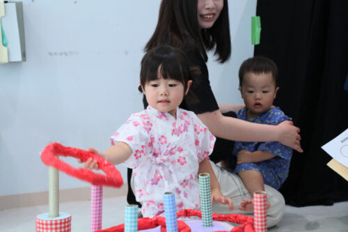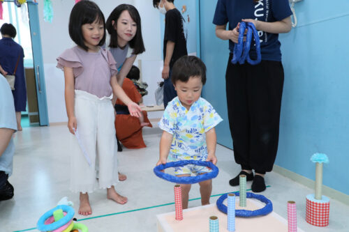 こちらは唐橋の職員さんの手作り。とってもかわいい輪投げです。