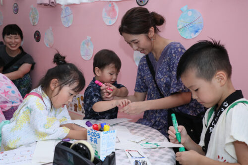 子どもたちにも、看板やちょうちん作りを手伝ってもらい、楽しみに当日を迎えました。