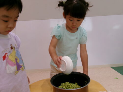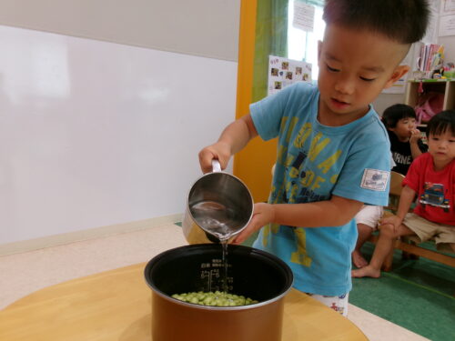 そして、みんながむいてくれた枝豆を投入。