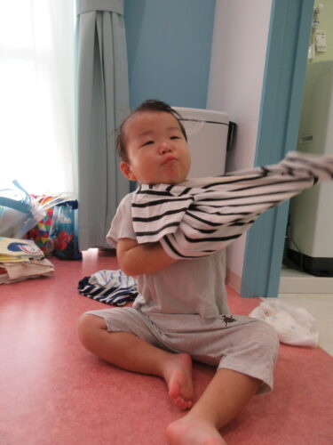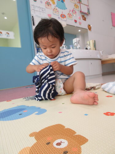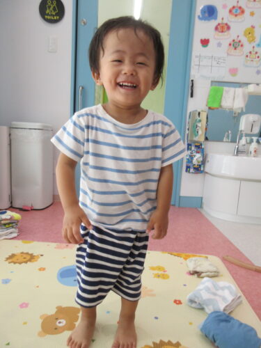時々、シャツを履いたり、前後ろが逆だったりもするのですが、「こっち向きだよ~」と伝えたり、逆だけど頑張って自分で着たんだな~と見守り、一緒に喜び合いながら過ごしているところです♪